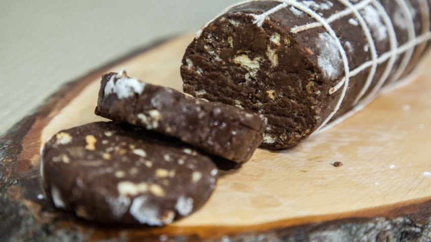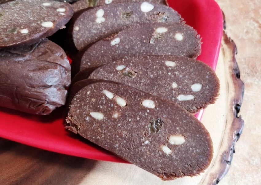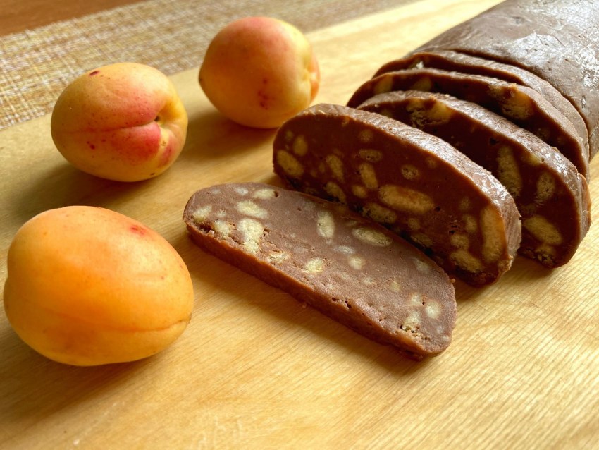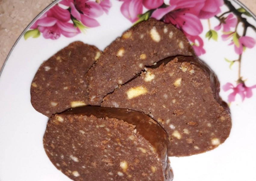 Шоколадная колбаса из печенья и какао со сгущенкой