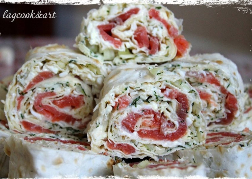 Лаваш с начинкой из красной рыбы и огурца (51 фото)