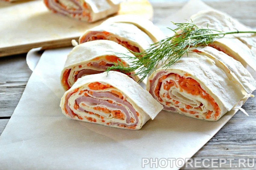 Рулет из лаваша с красной рыбой и плавленным сыром