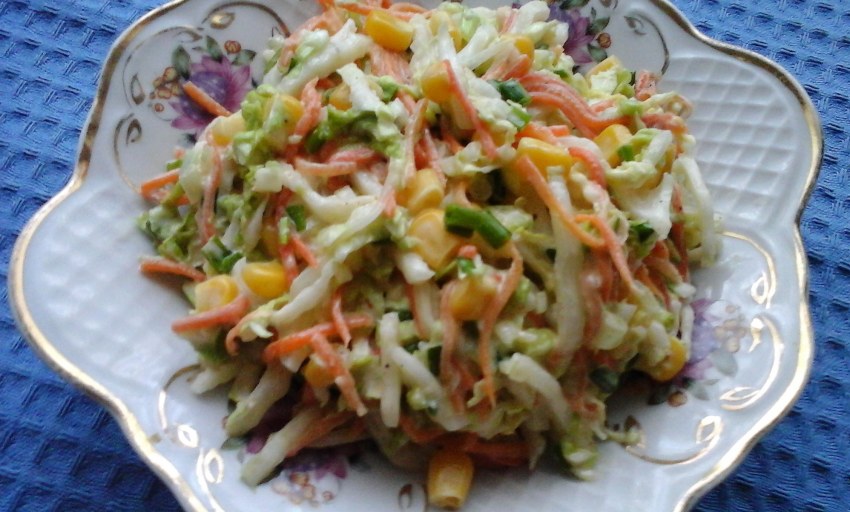 Салат с пекинской капустой и кукурузой и колбасой копченой