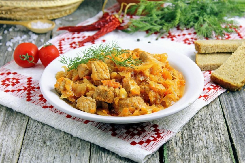 Тушёная капуста с мясом
