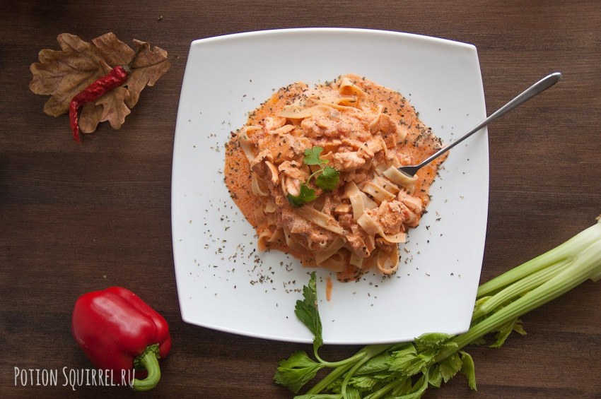 Паппарделле с лососем