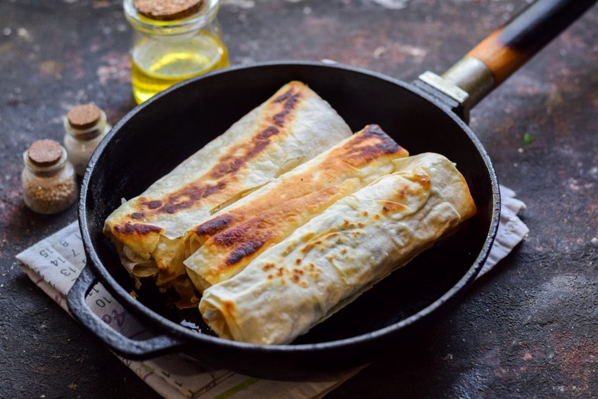 Сосиска в лаваше на сковороде с сыром (53 фото)