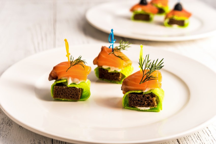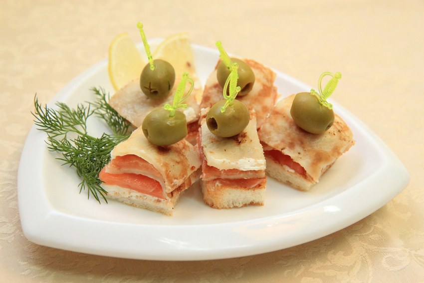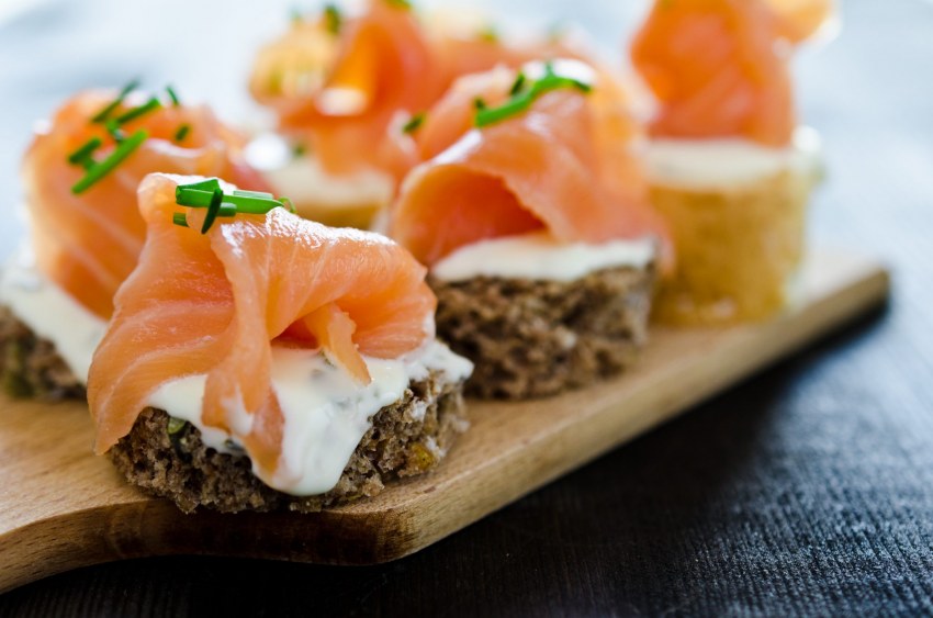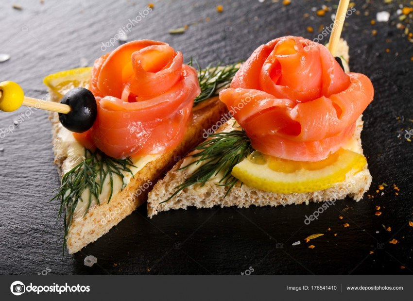Хлеб чёрный, сливочный сыр, рыба канапэ