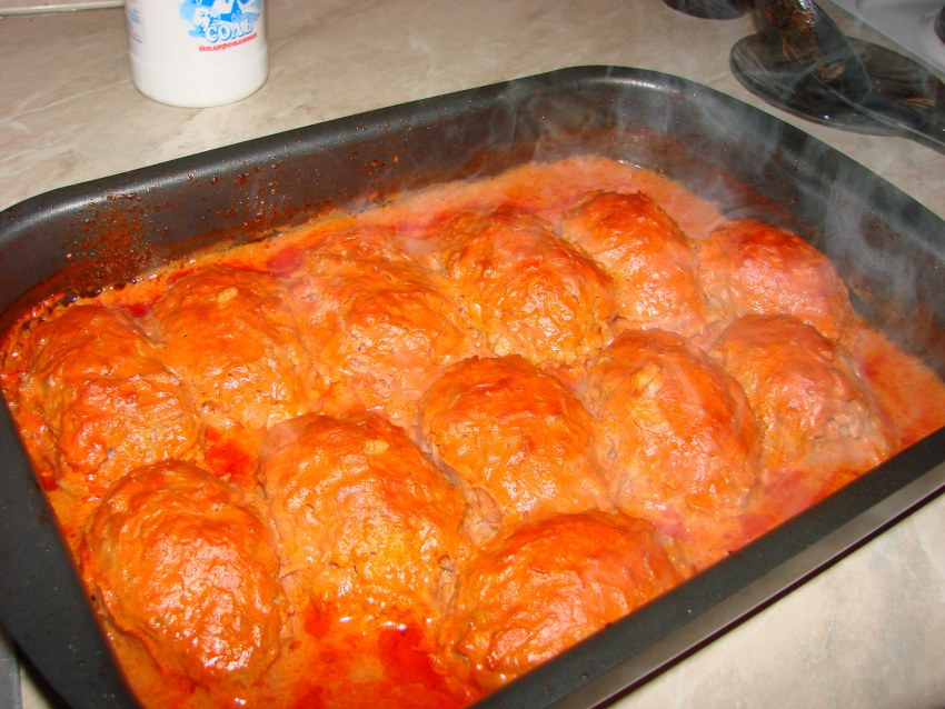 Ленивые голубцы в духовке в томатно-сметанном соусе