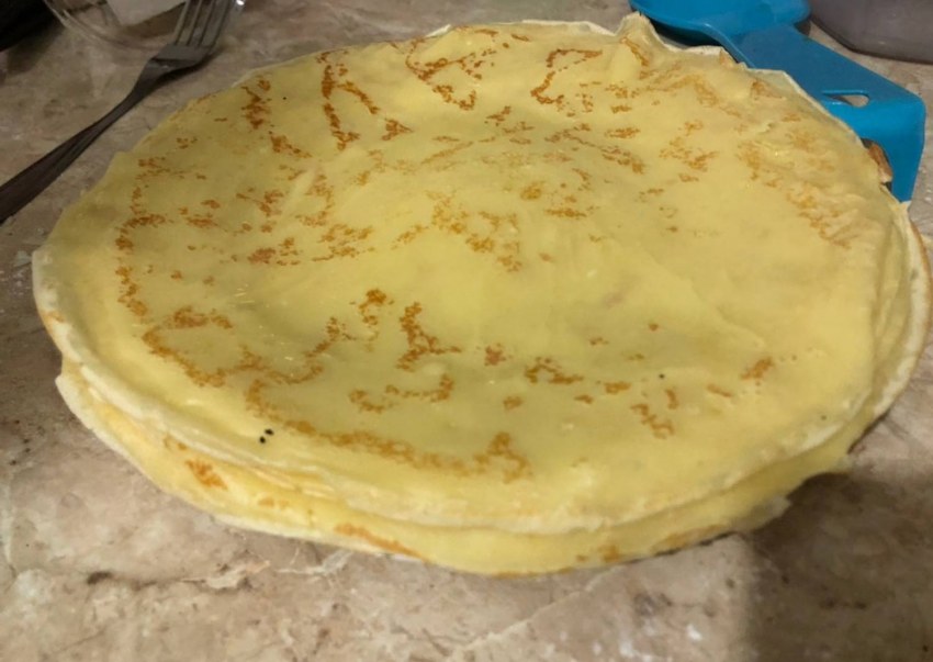 Выливаем желтки на сковороду, равномерно распределяем фото
