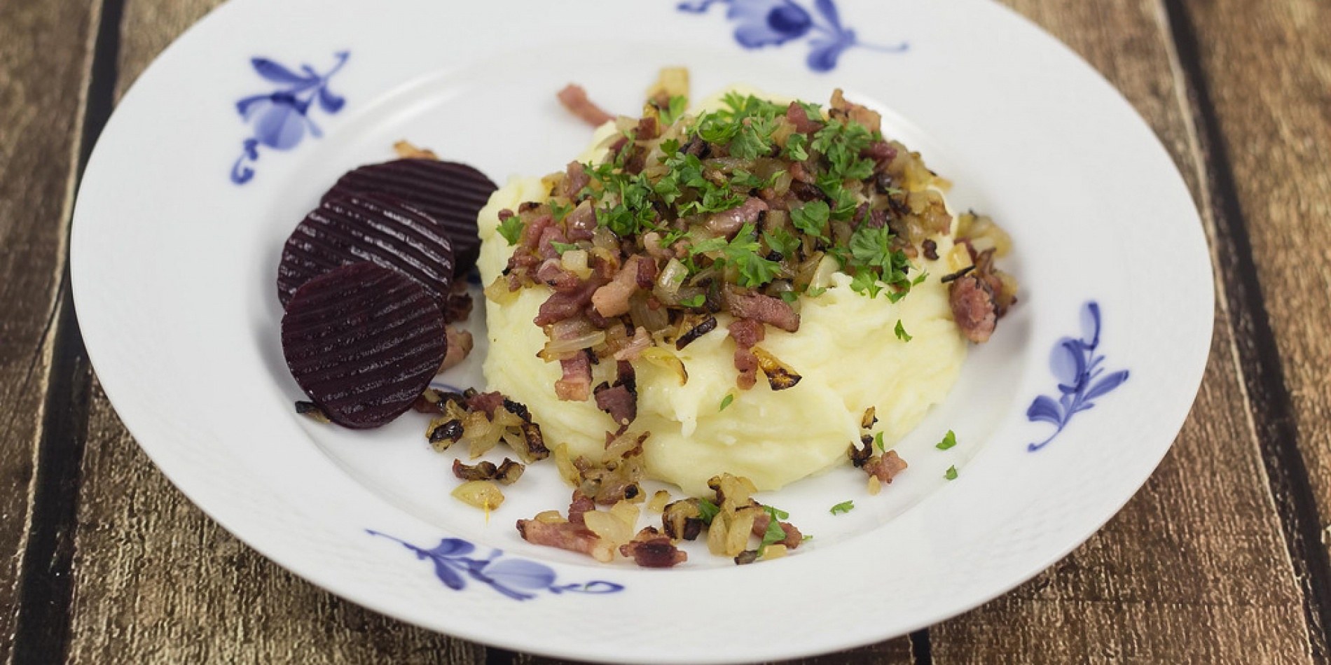 Картофельное пюре с беконом и луком