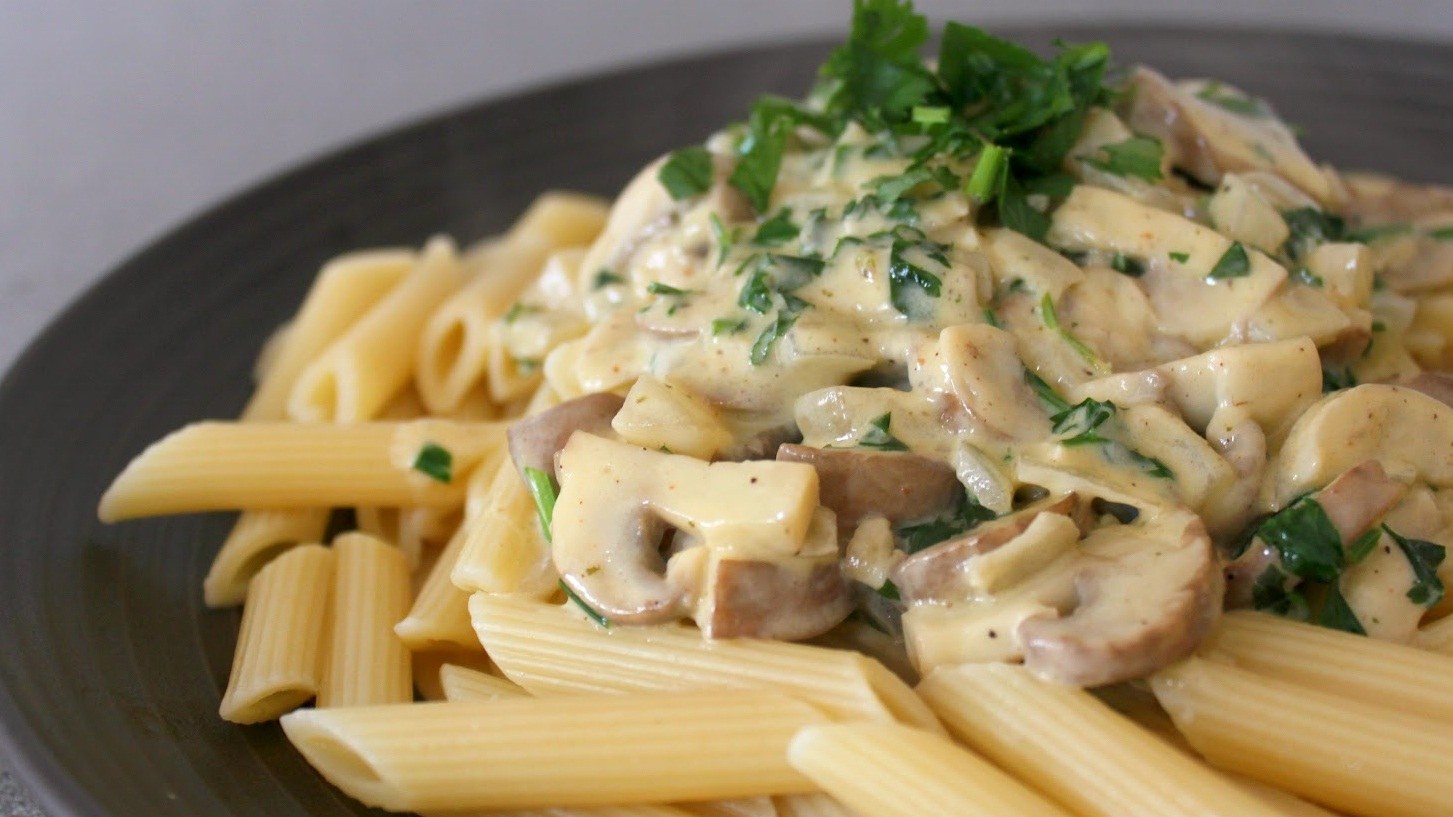 Макароны с грибным соусом из сметаны