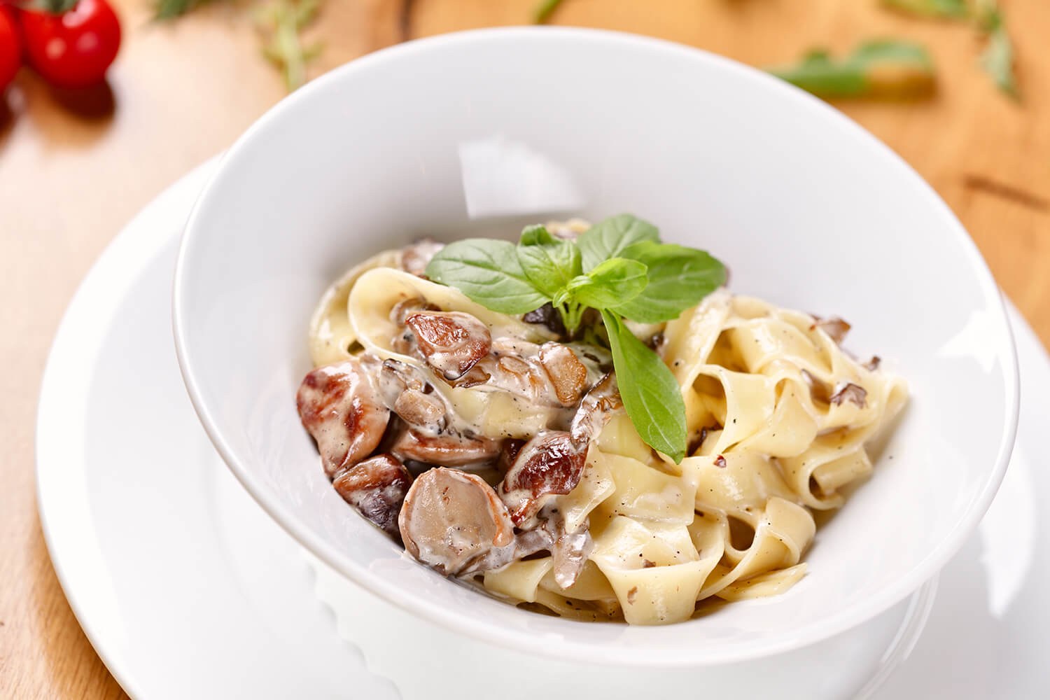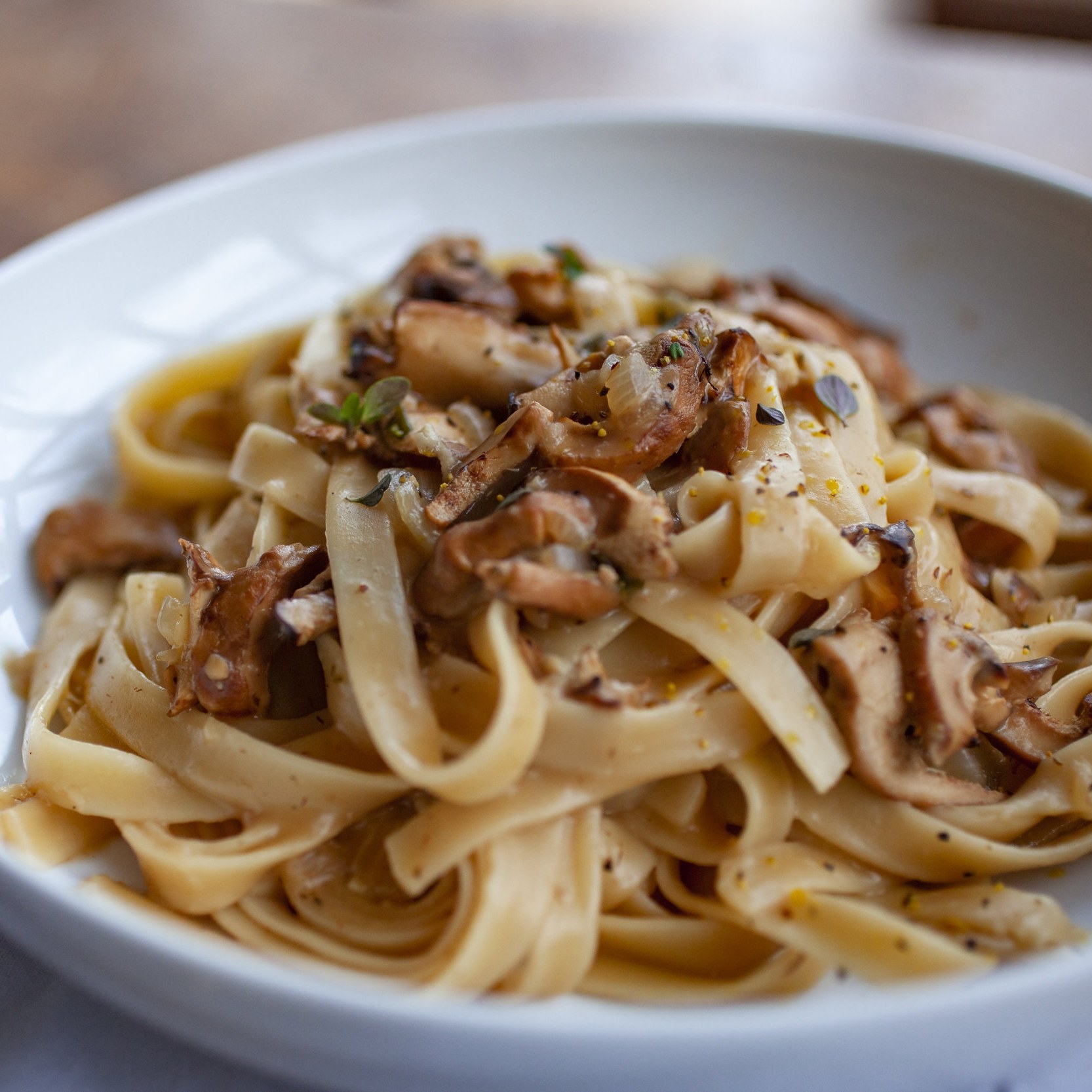 Паста тальятелле с белыми грибами