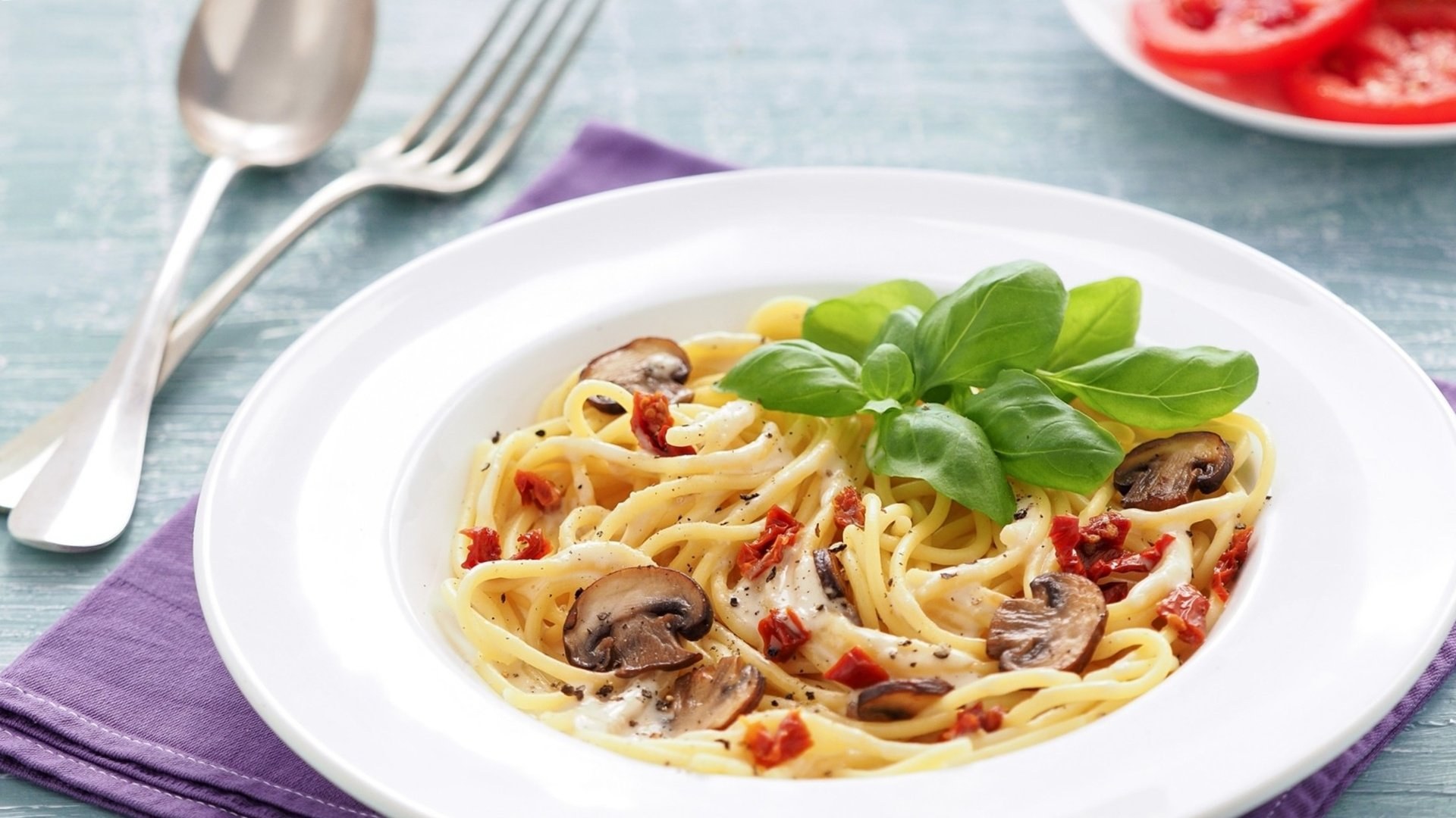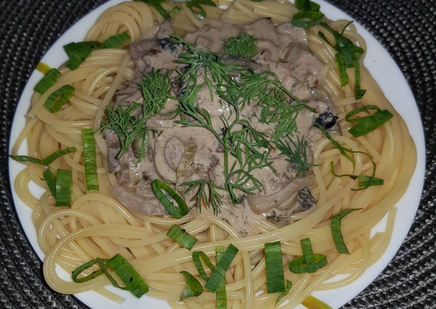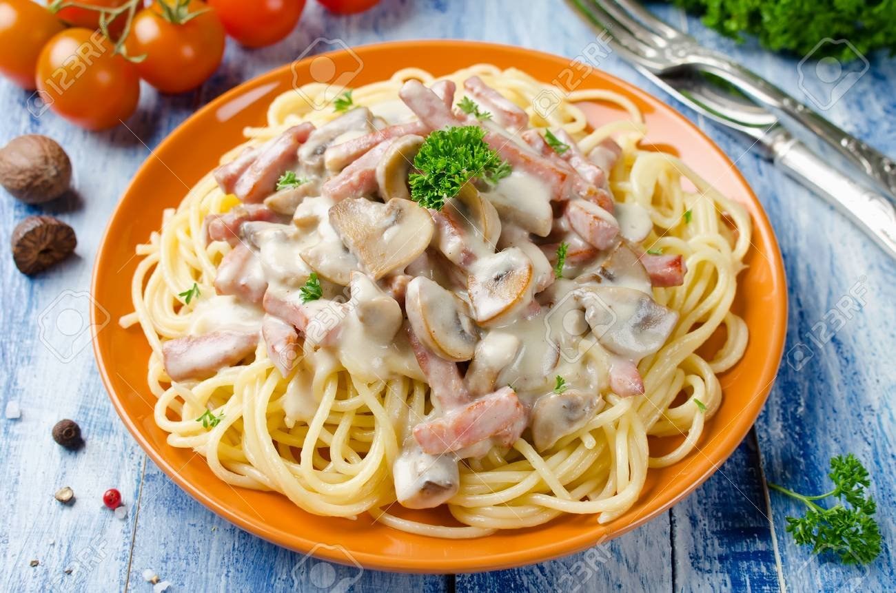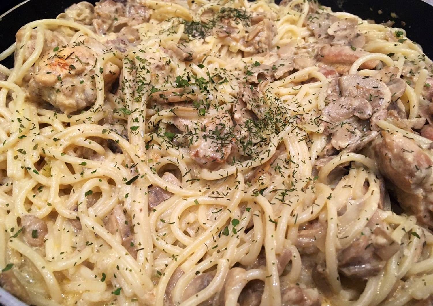 Спагетти с грибным соусом со сливками