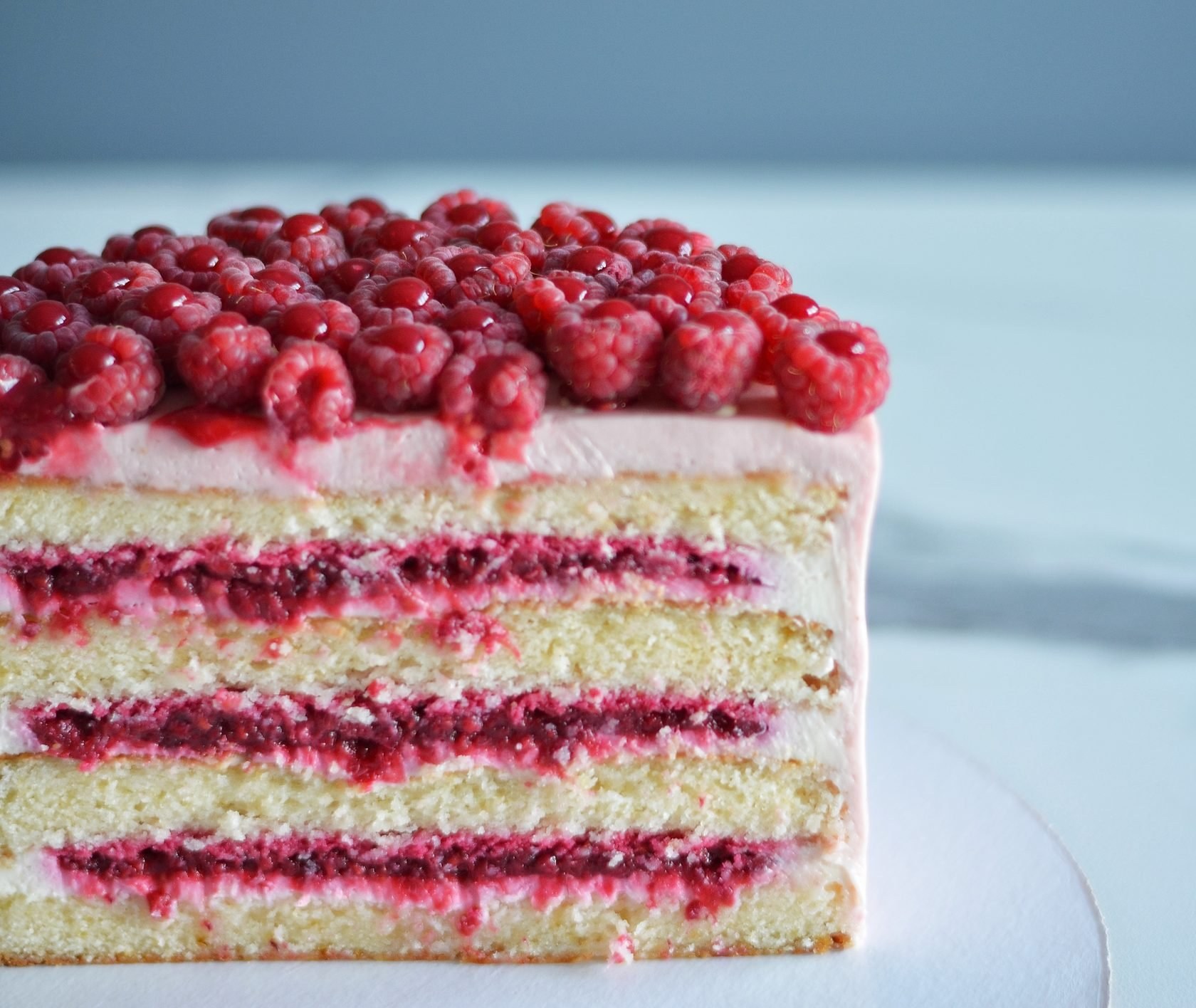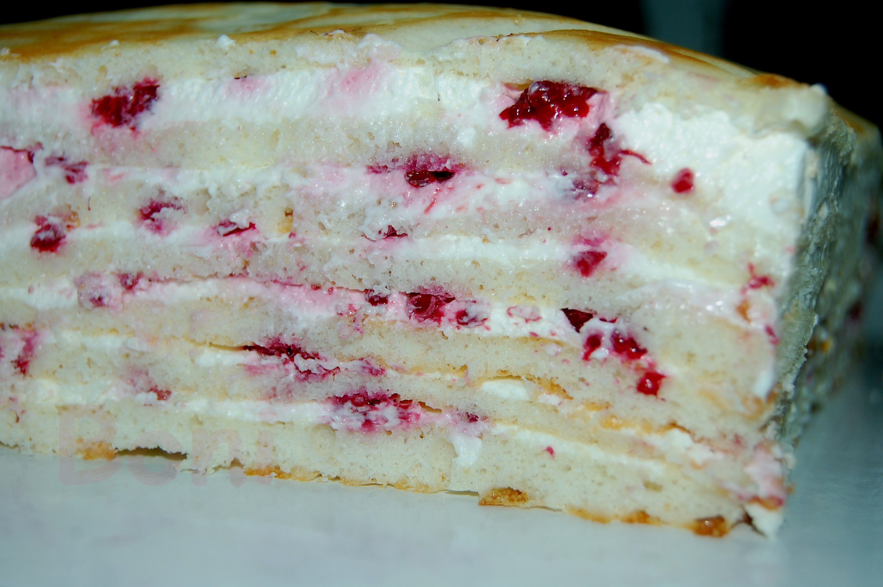 Торт с малиной и кремом чиз
