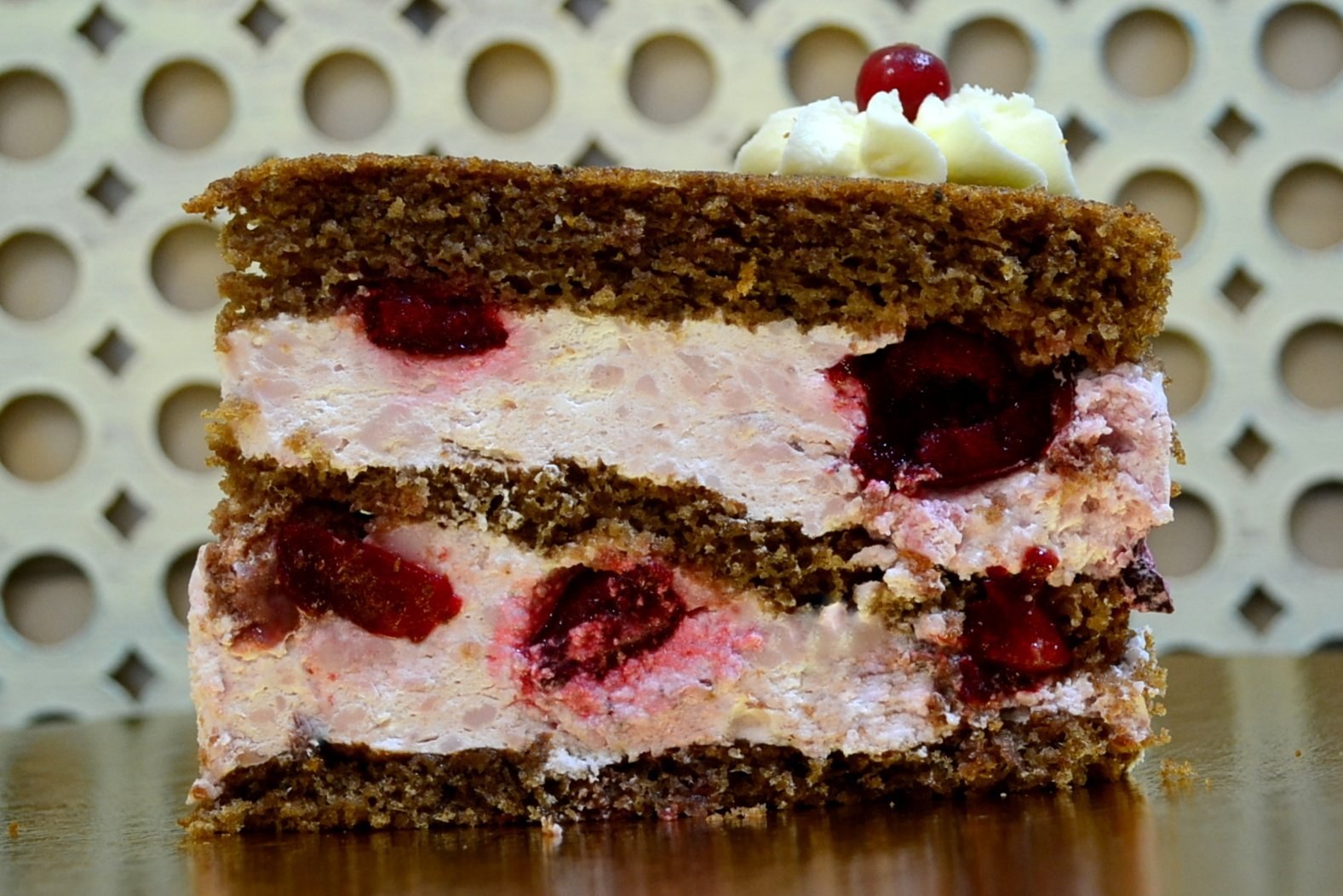 Кусок торта с вишней