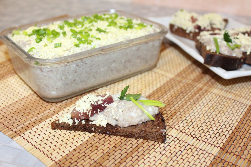 Форшмак с солеными грибами и сельдью