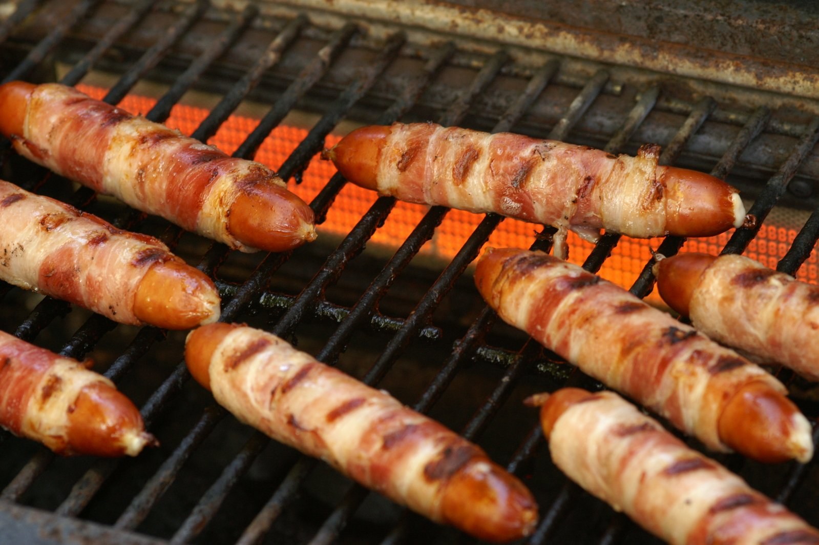 Сосиски в беконе на мангале