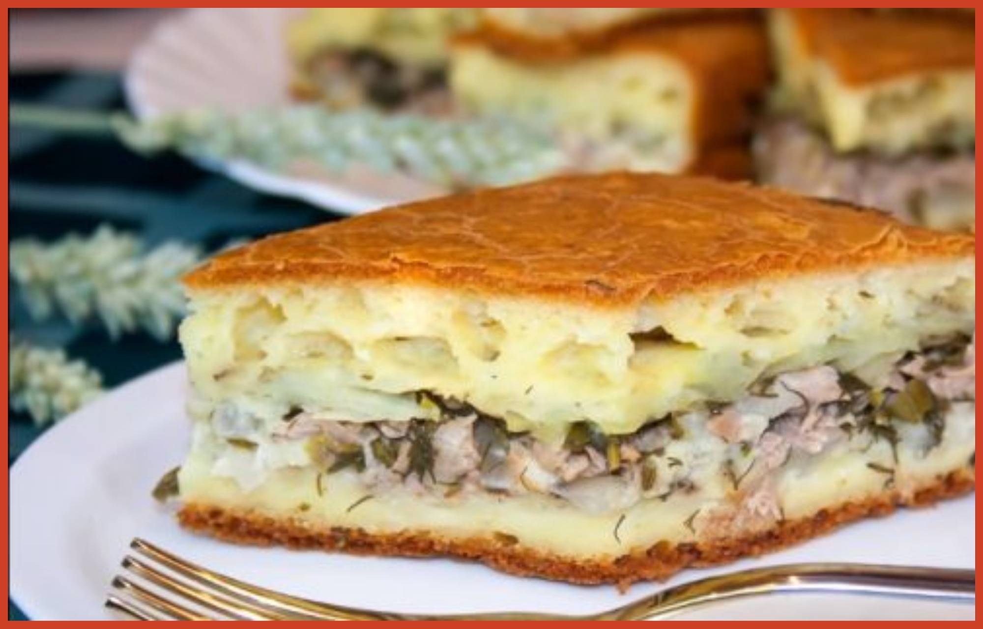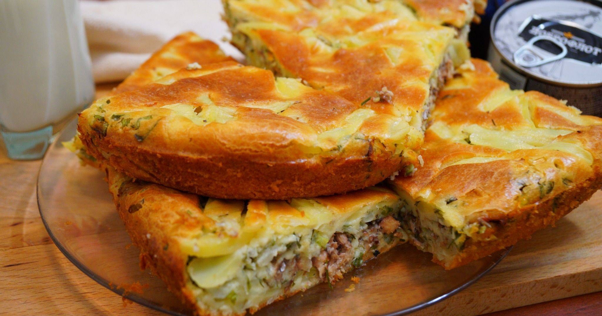 Заливной пирог с консервой и картошкой