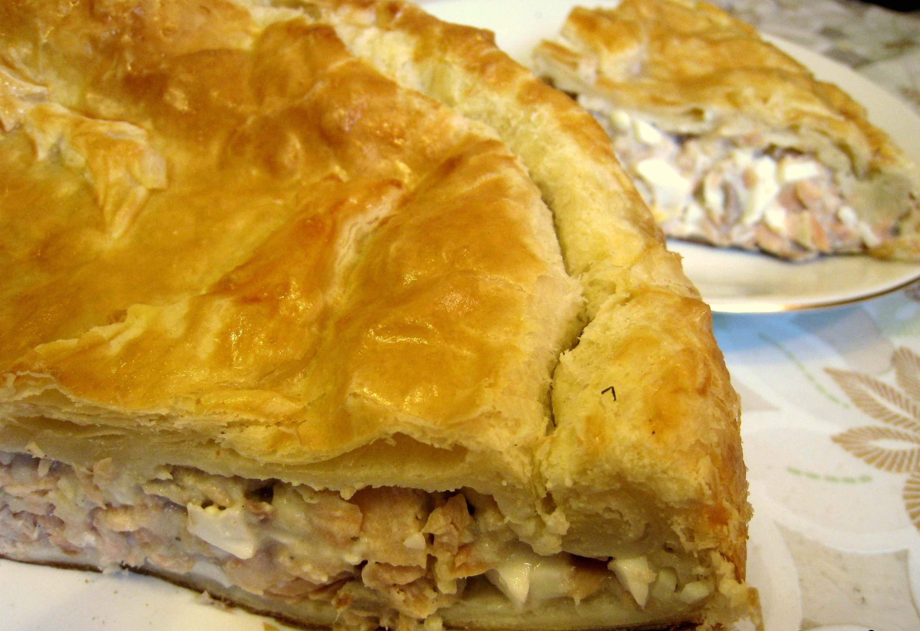 Рыбный пирог из слоеного теста