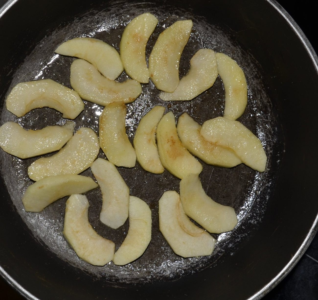 Жареные дольки яблок на сковороде