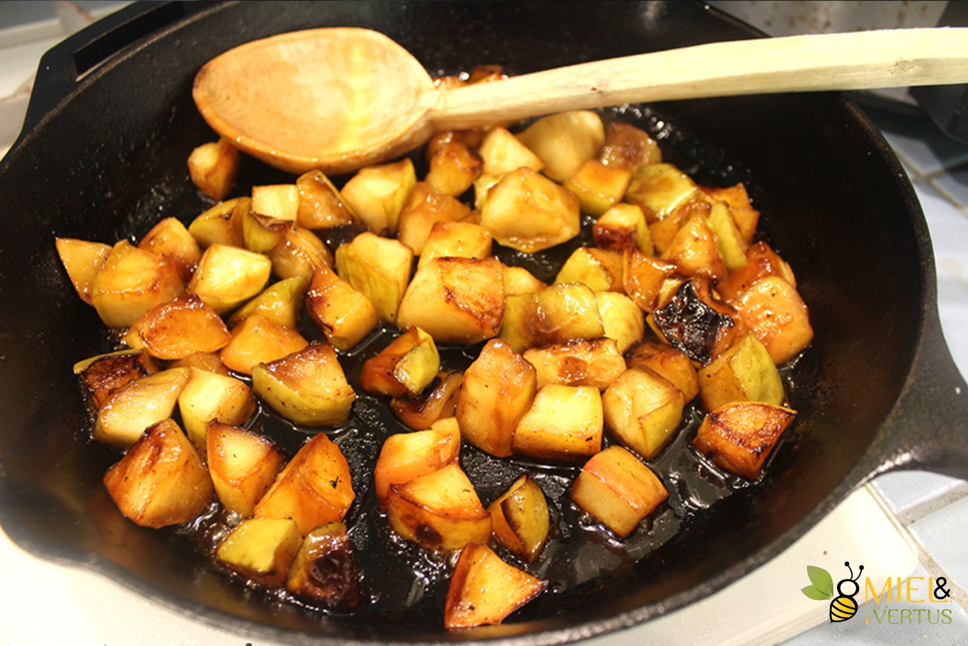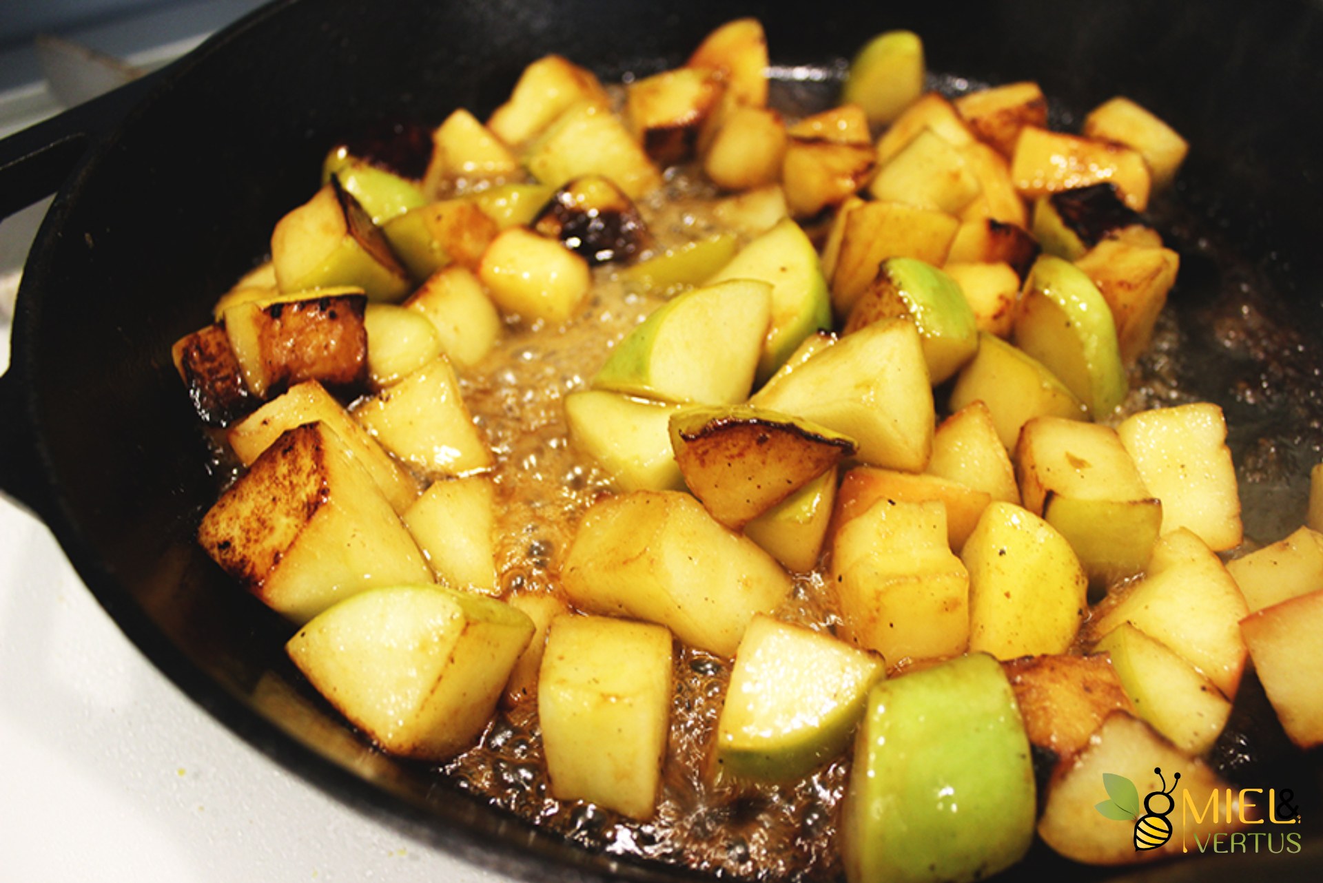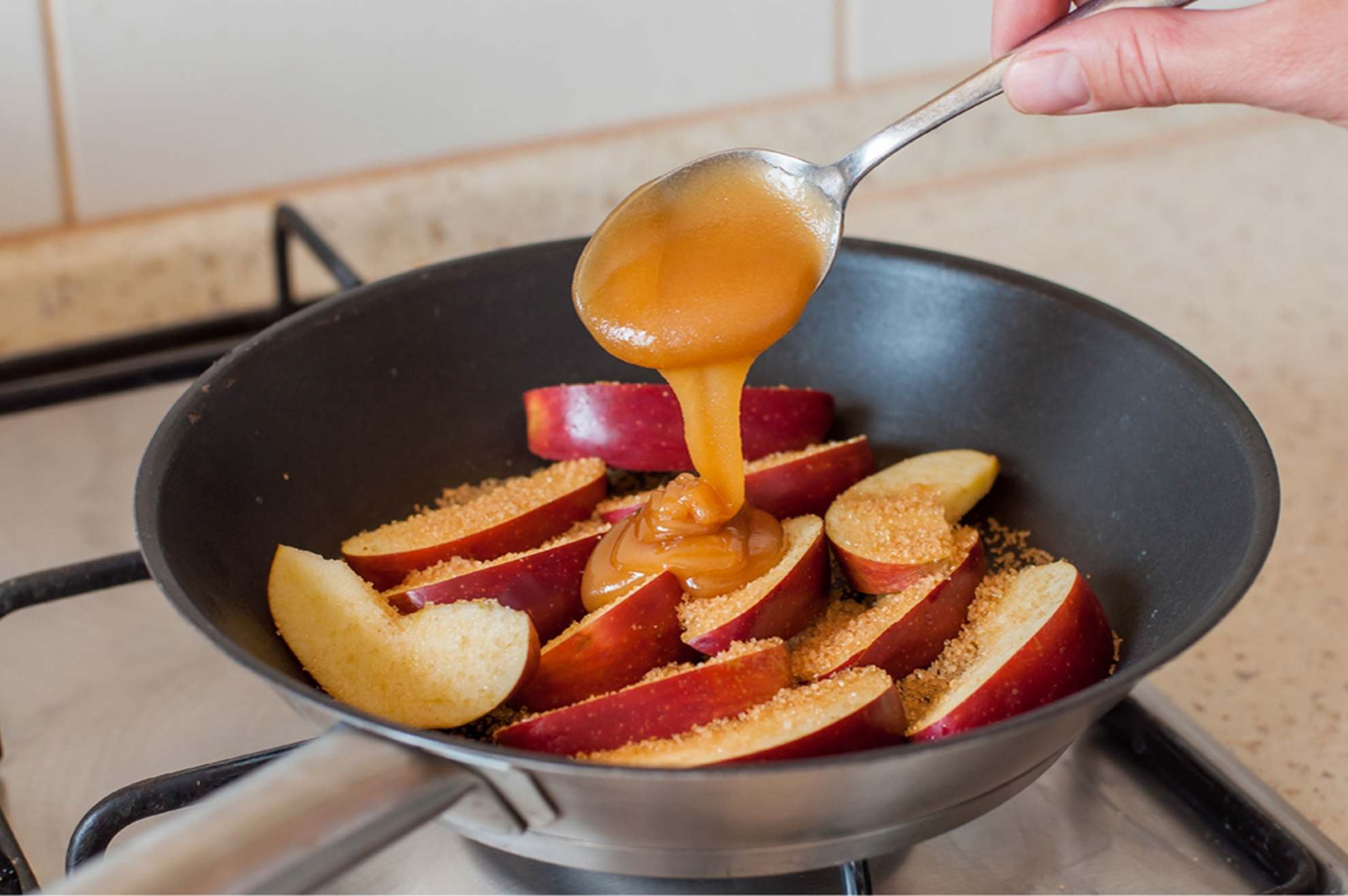 Яблоки в карамели на сковороде
