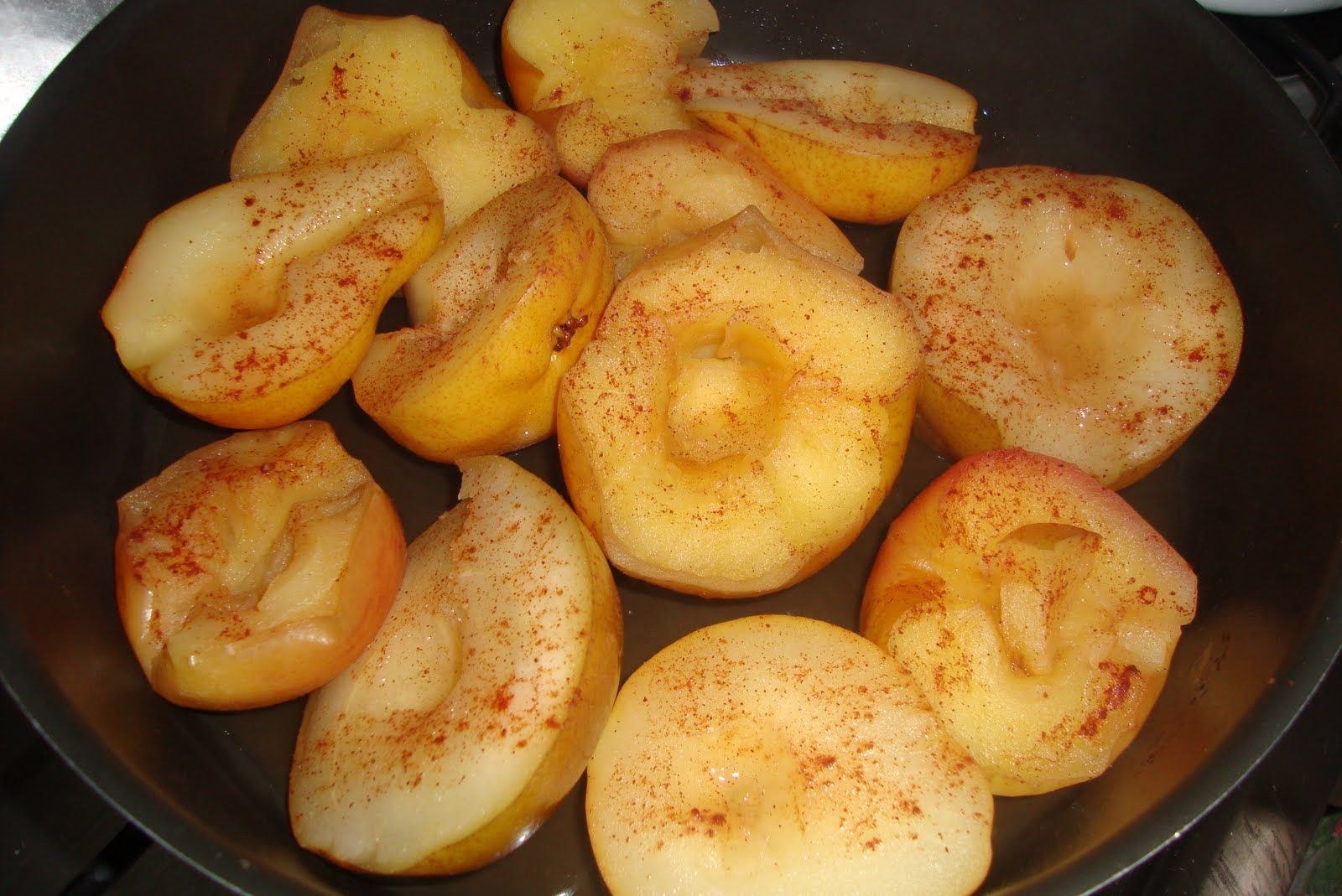 Яблоки с корицей в сковородке
