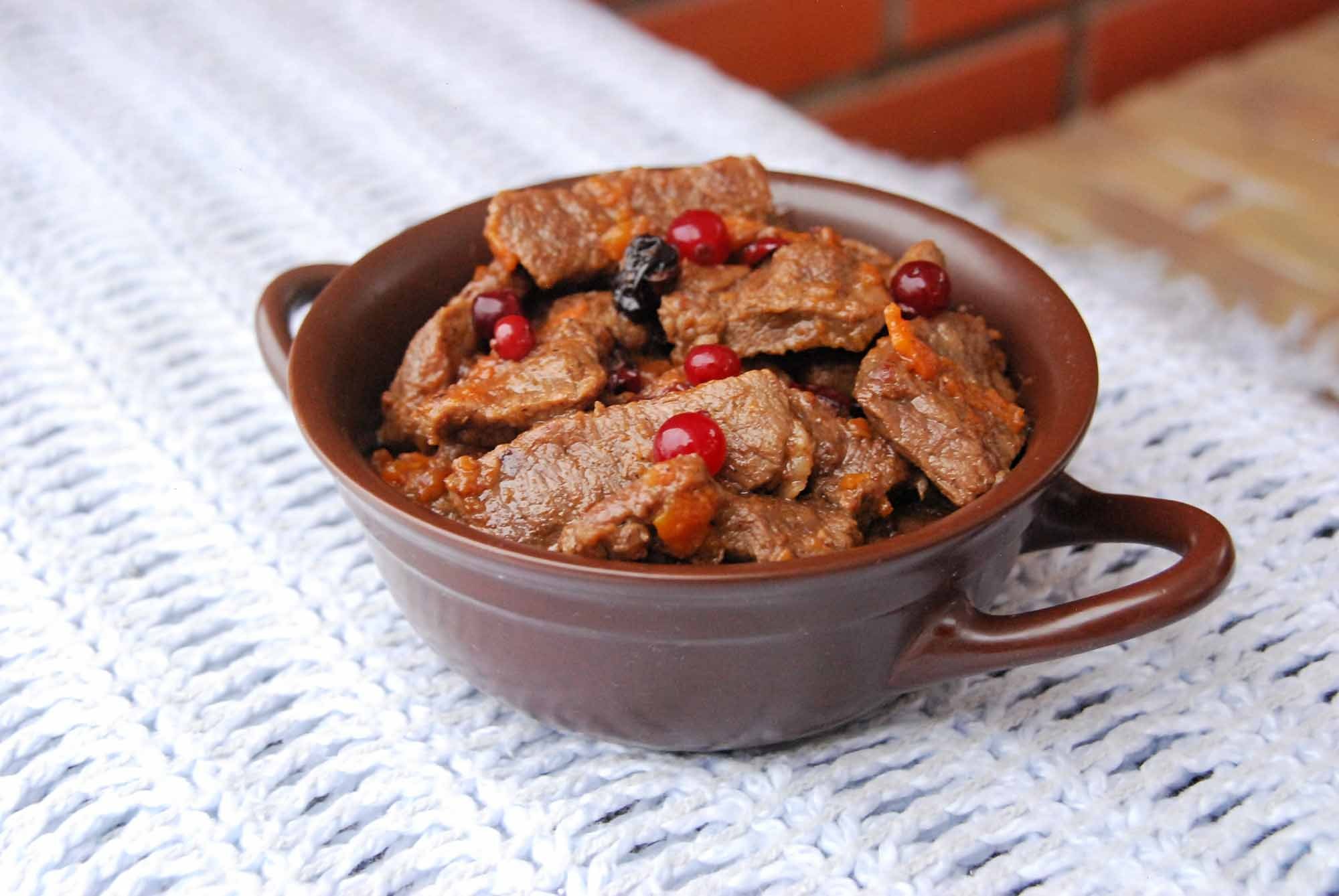 Говядина тушеная с брусникой