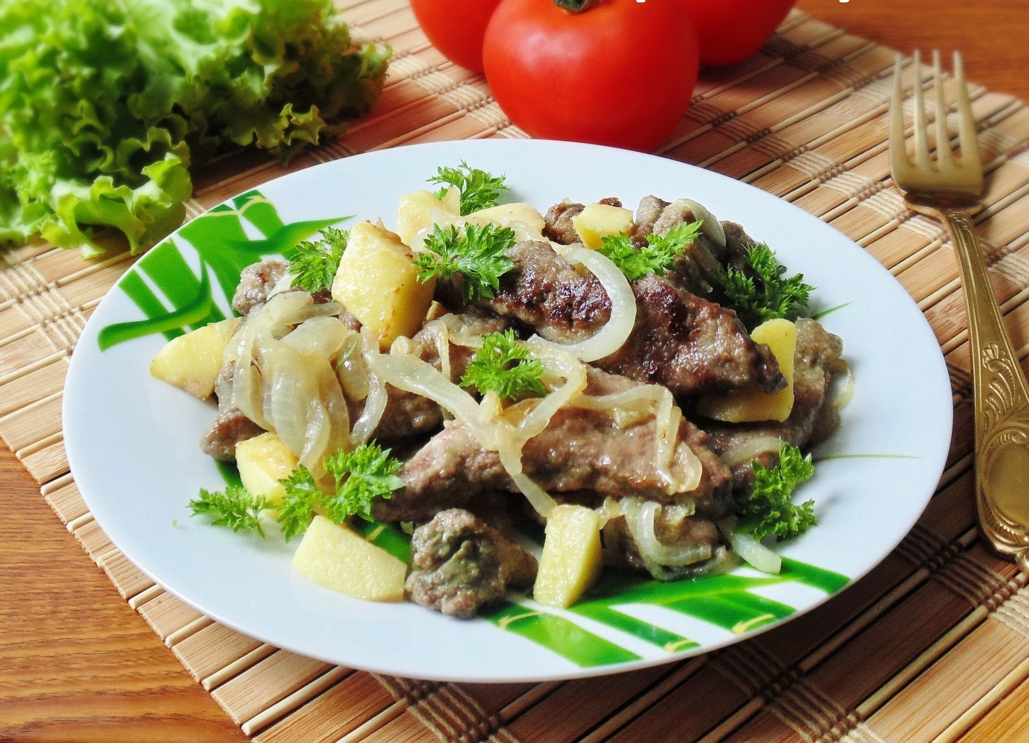Тушеная картошка с куриной печенью