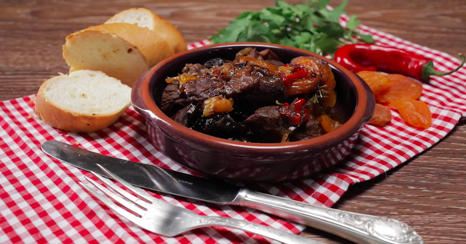 Говядина томленая с черносливом в горшочке