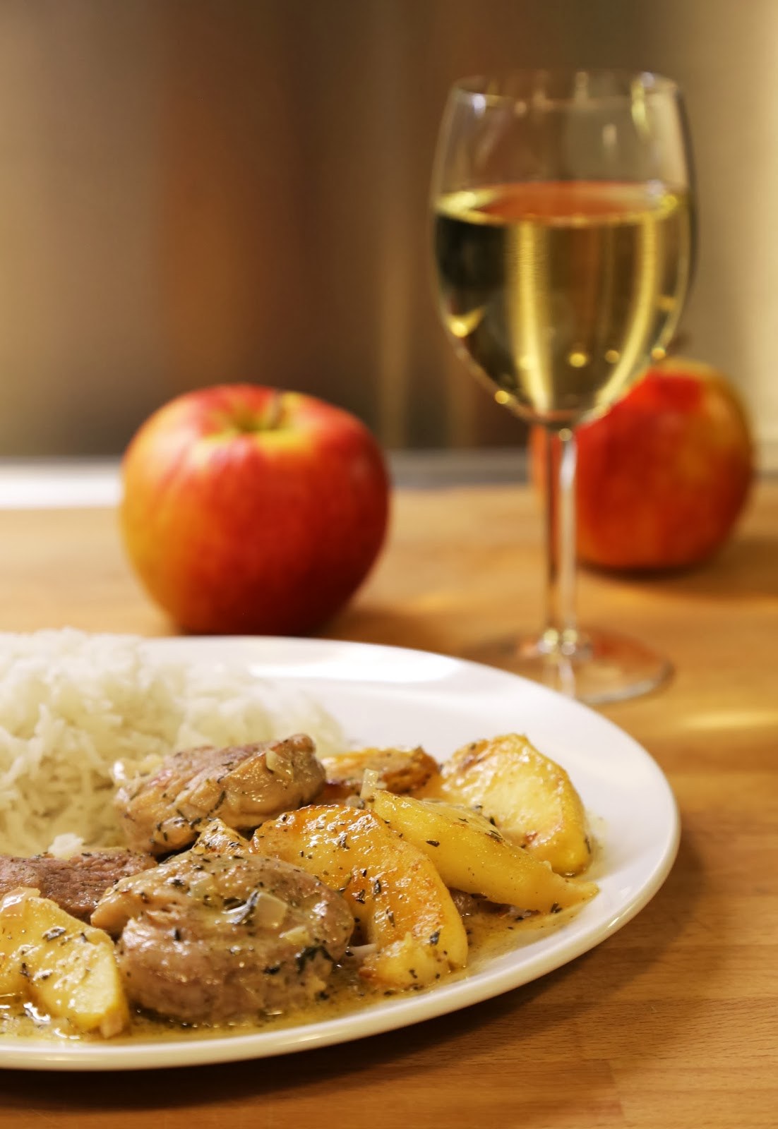 Филе свиное, тушеное с яблоками