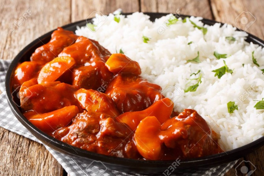 Сервировка говядина и рис