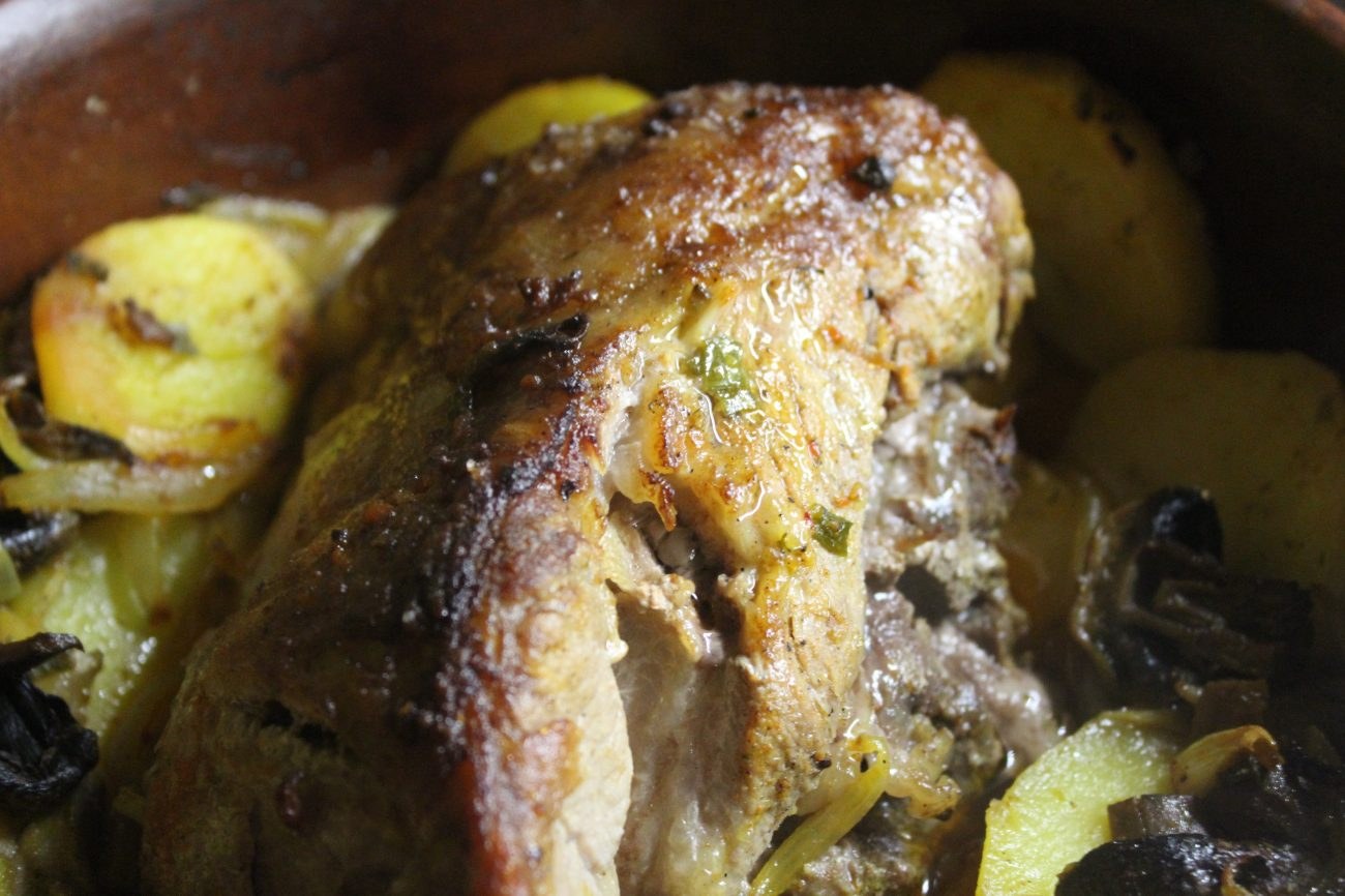 Свинина с картошкой и грибами в духовке