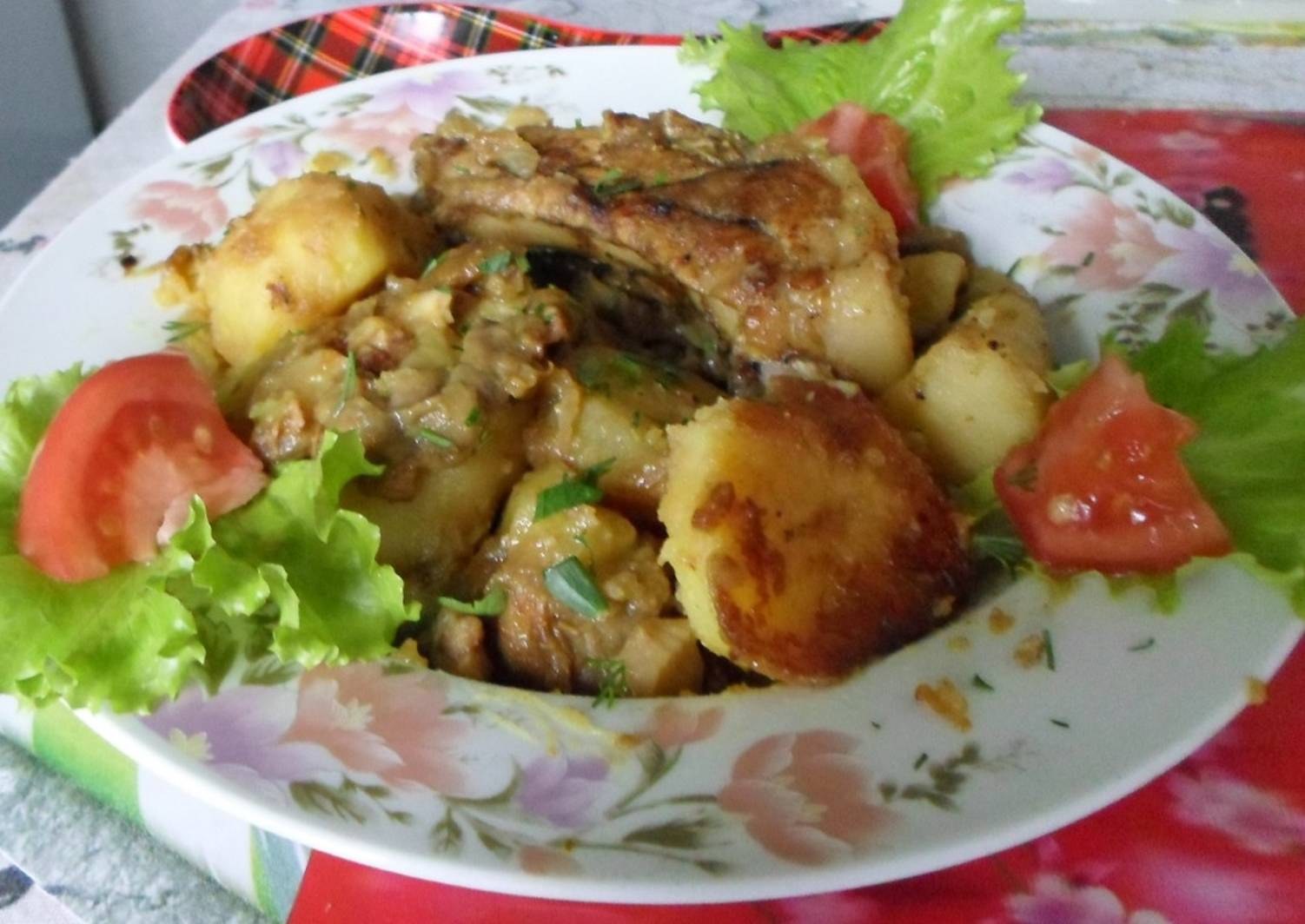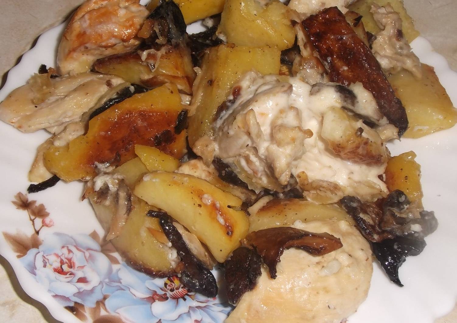 Картошка с курицей и грибами