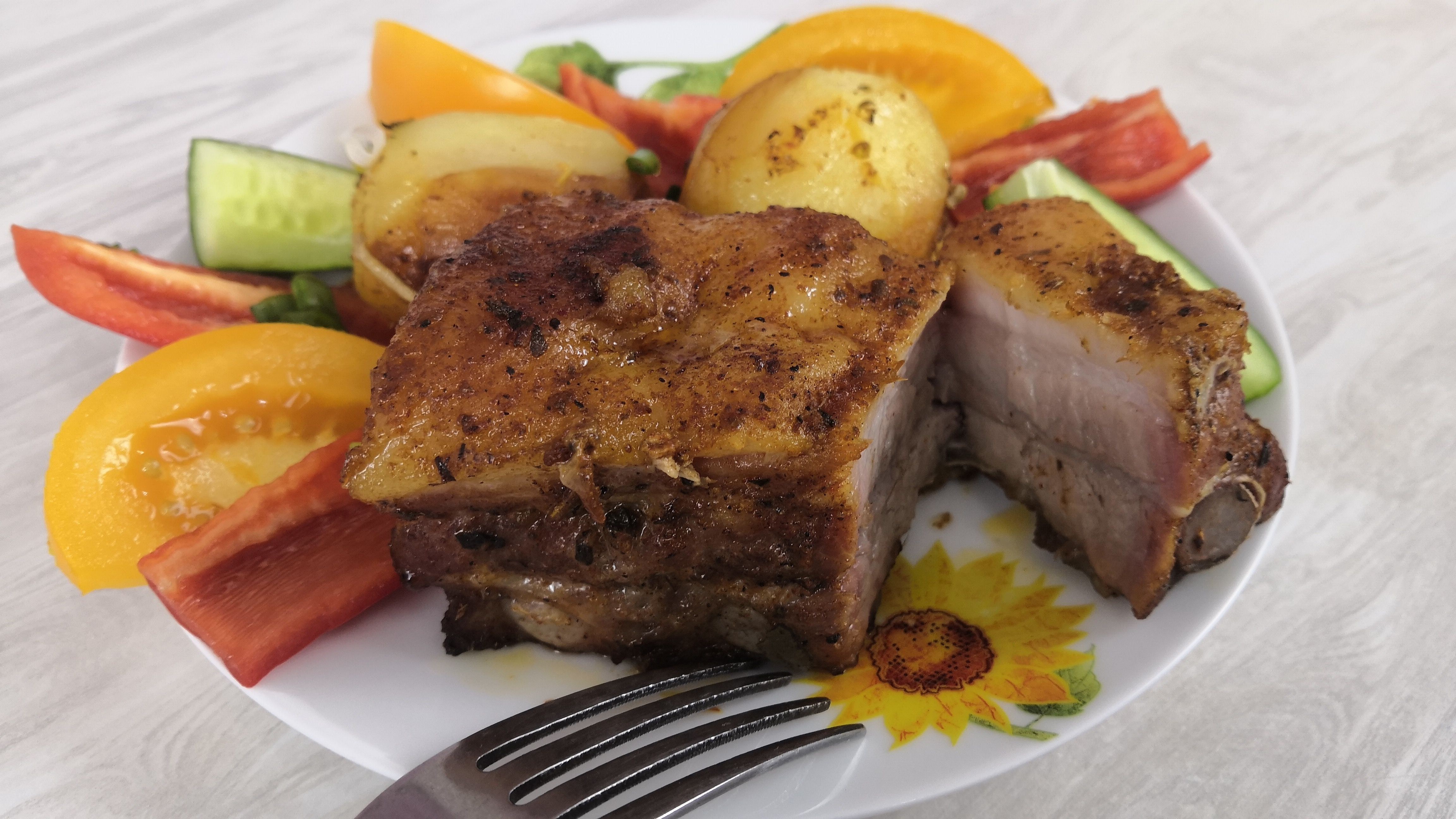 Корейка на кости в духовке с картошкой