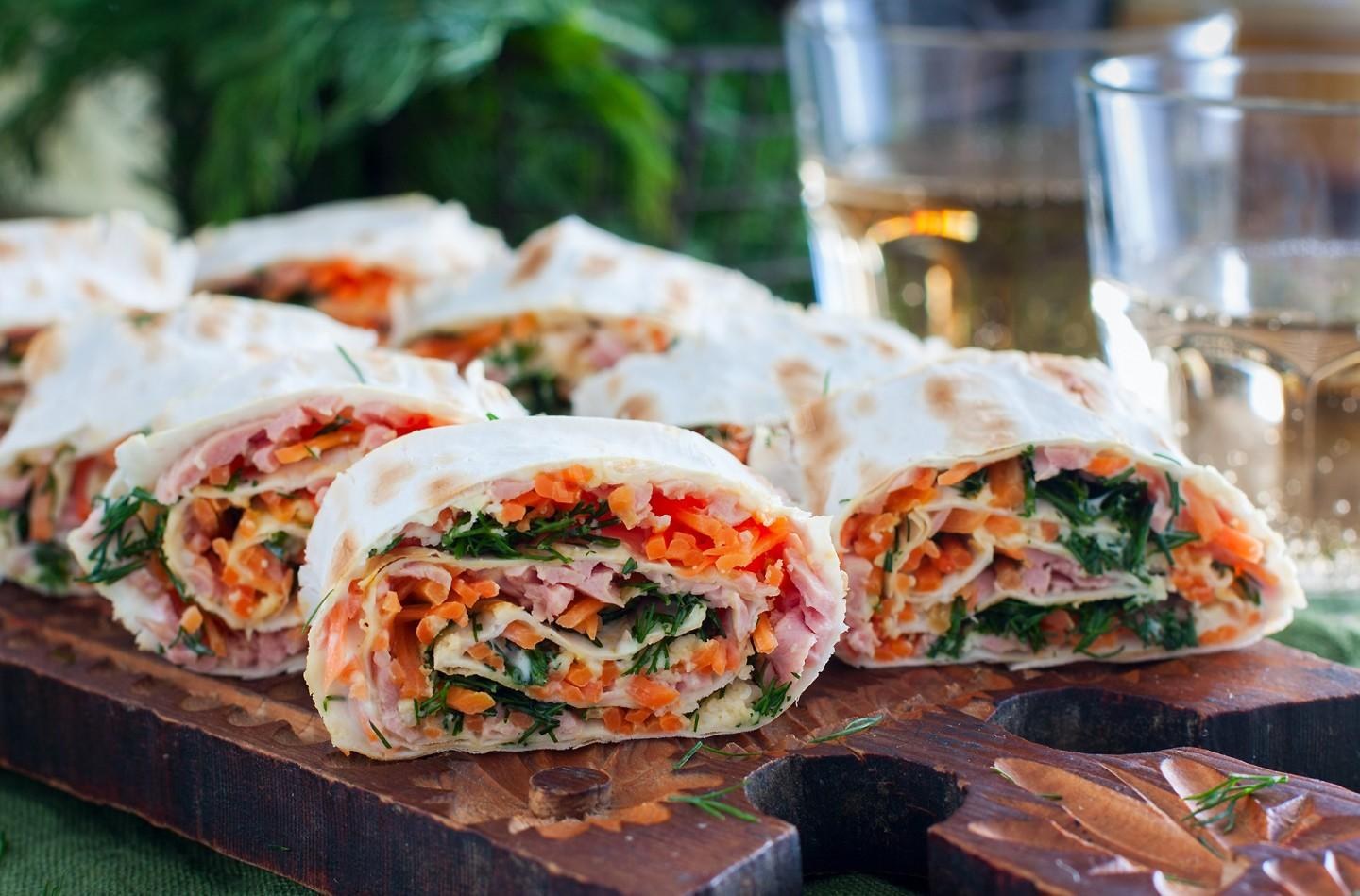 Рулет из лаваша с корейской морковкой и плавленным сыром