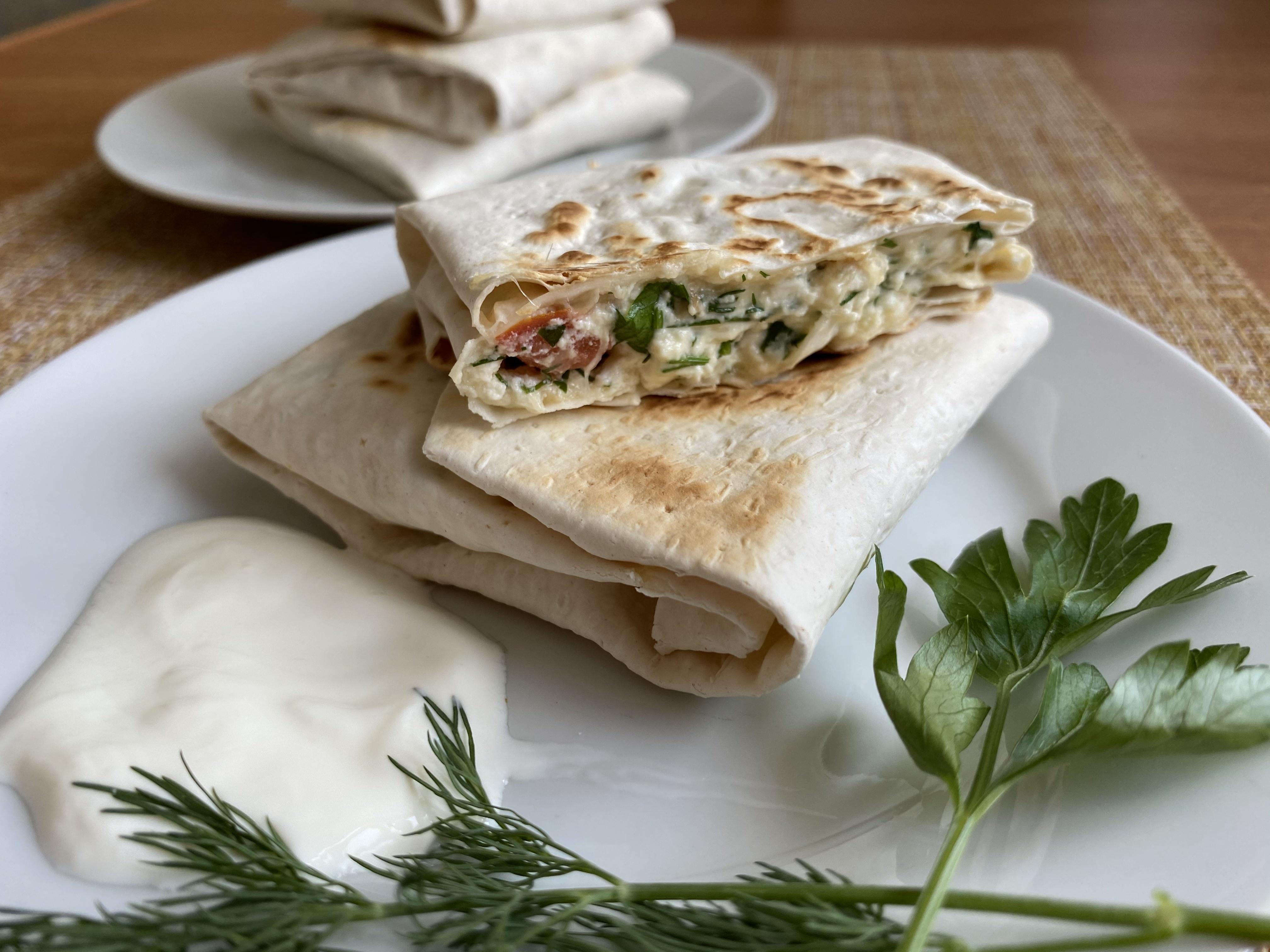 Рулет из лаваша с курицей и сыром и яйцом и зеленью