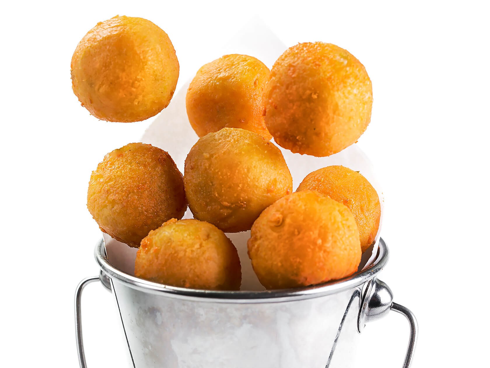 Картофельные шарики на белом фоне