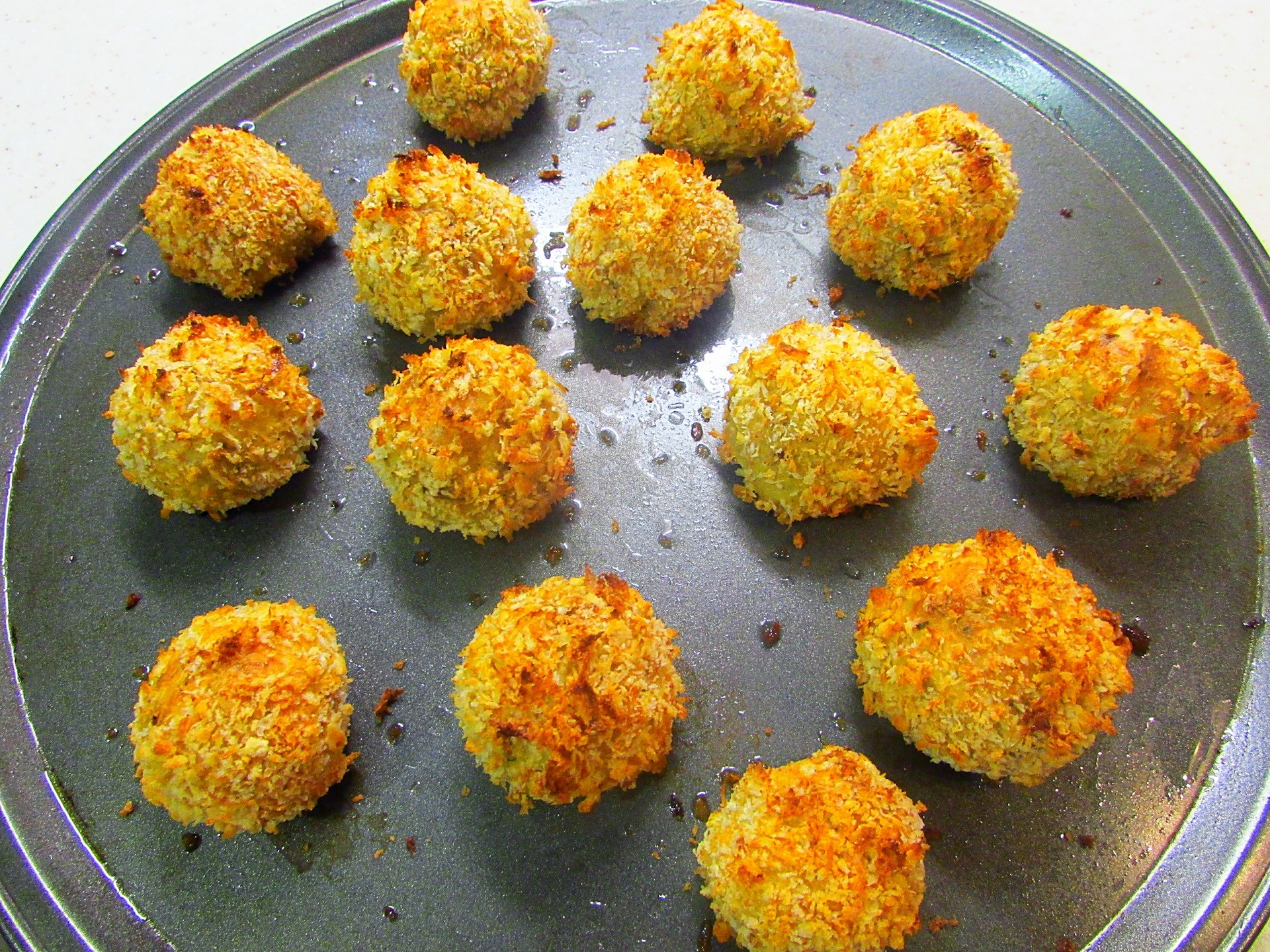 Картофельные шарики из пюре в панировке в духовке