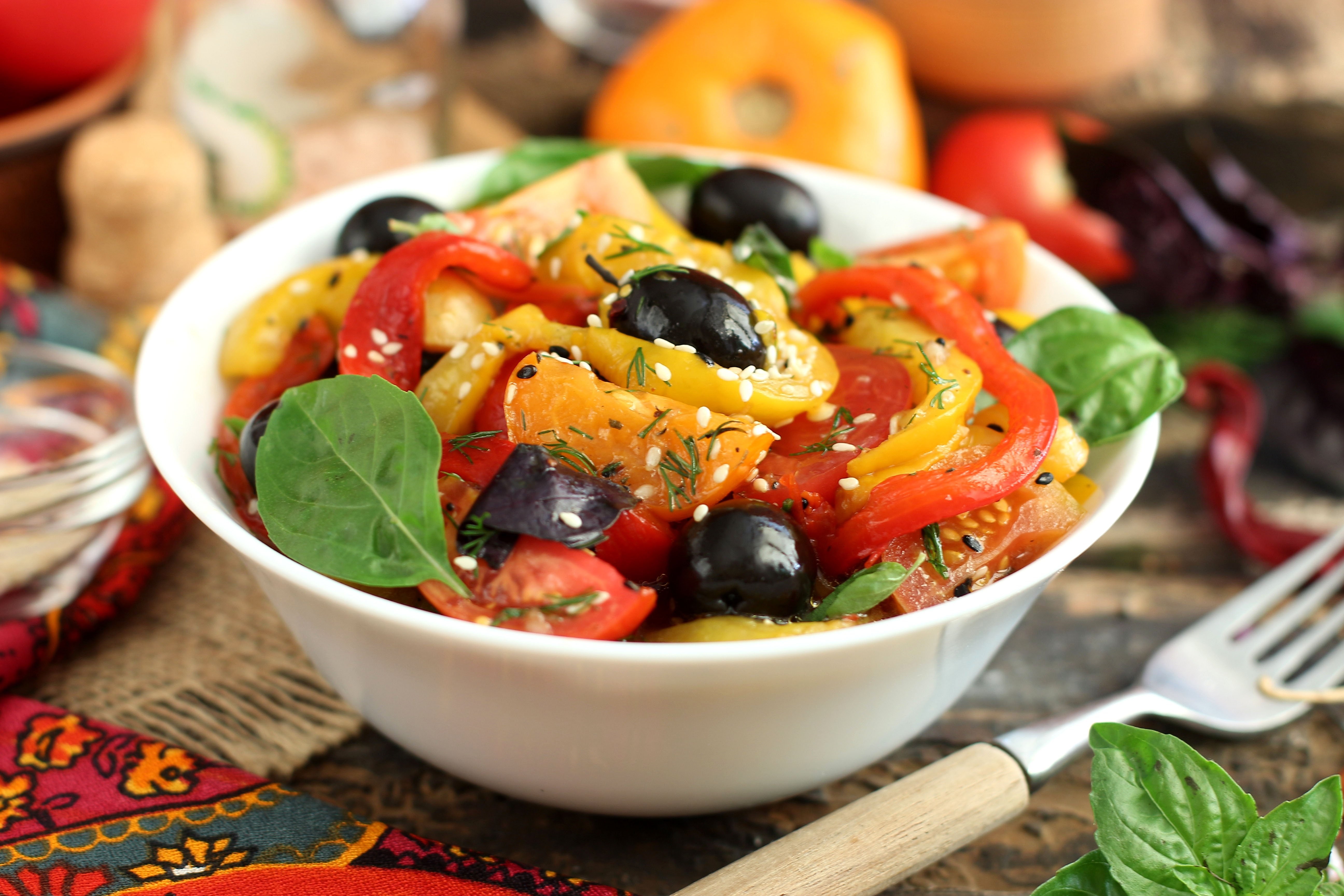 Вегетарианские теплые салаты