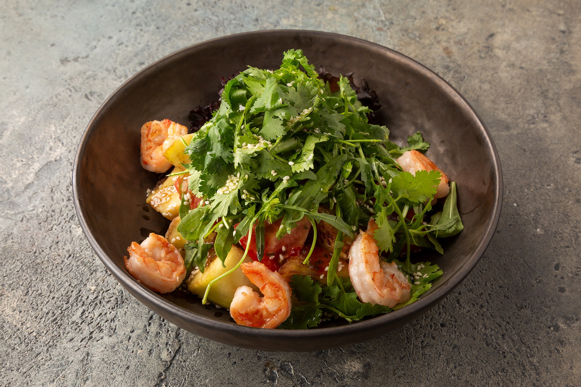 Салат с креветками и овощами гриль