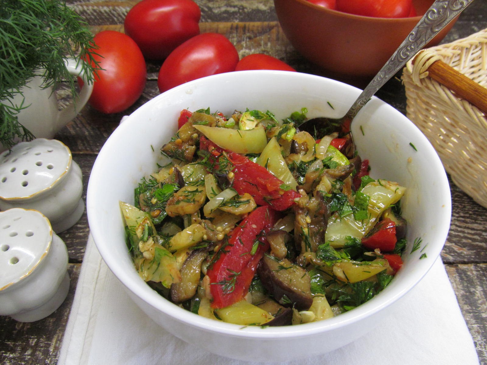 Салат с баклажанами и перцем