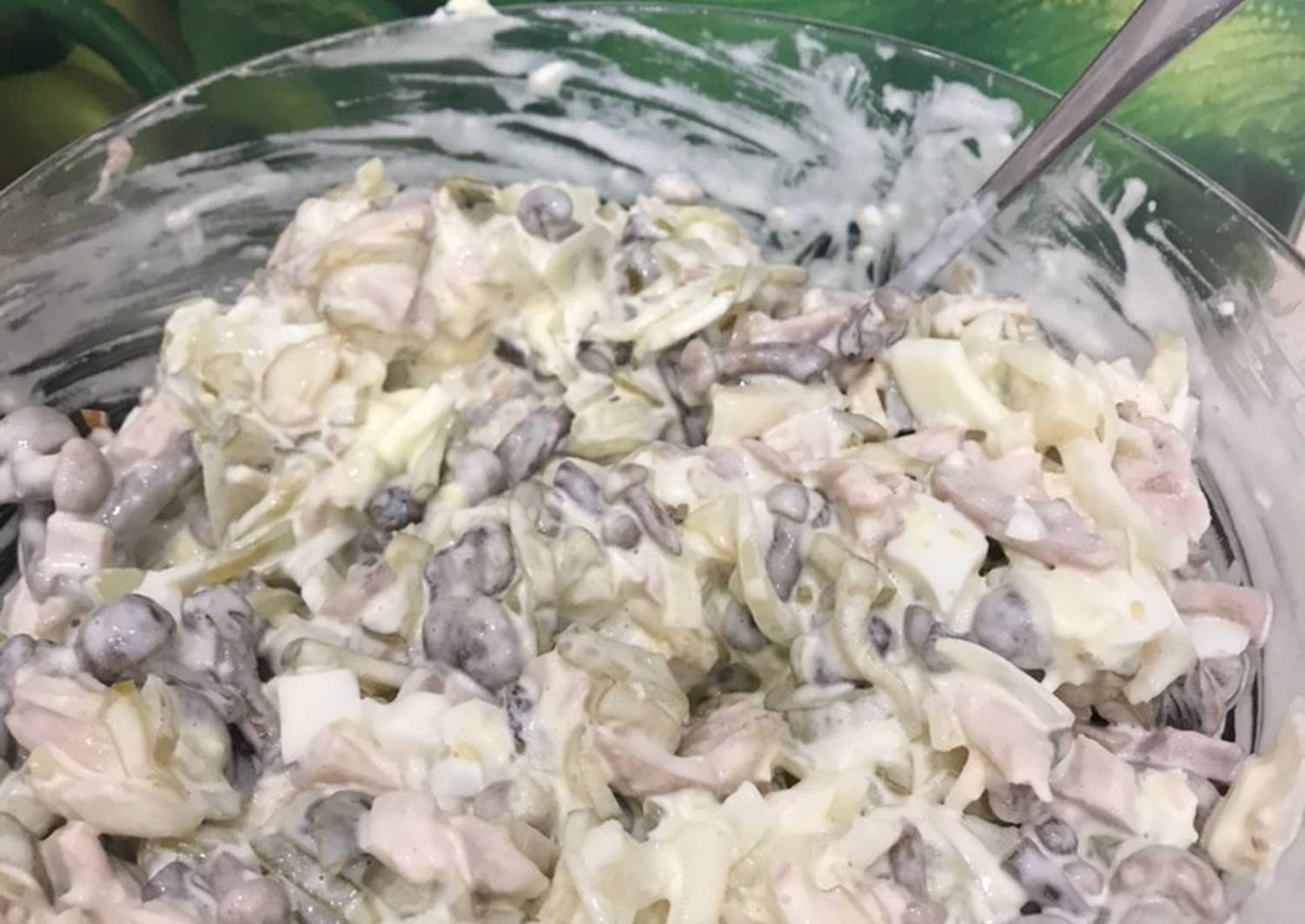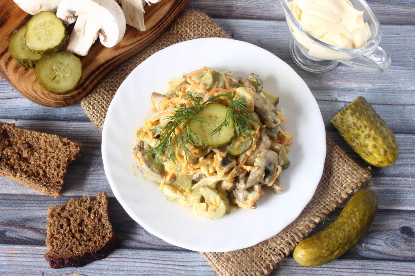 Салат грибной с печенью