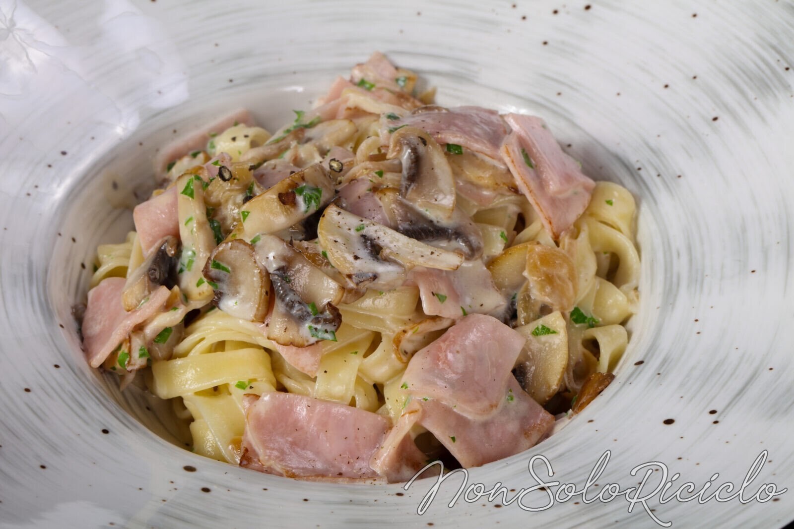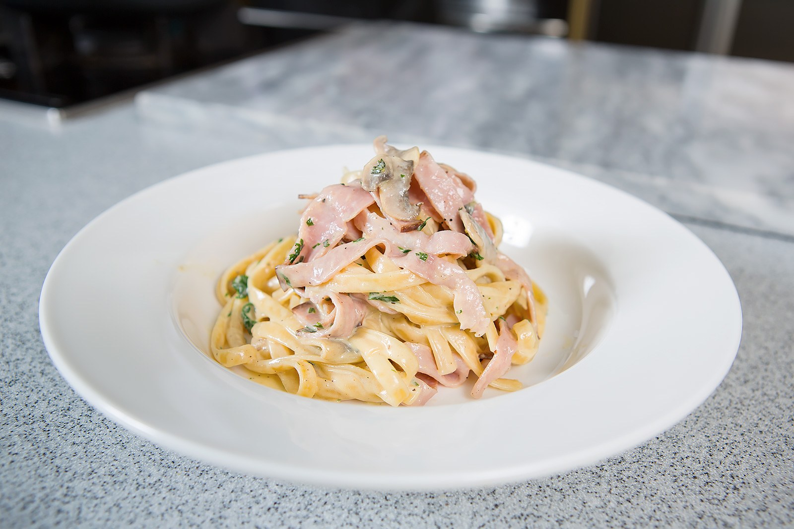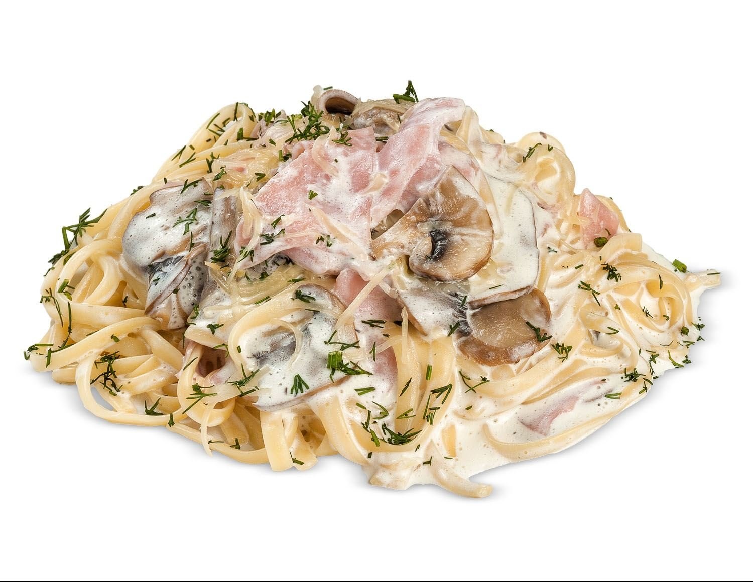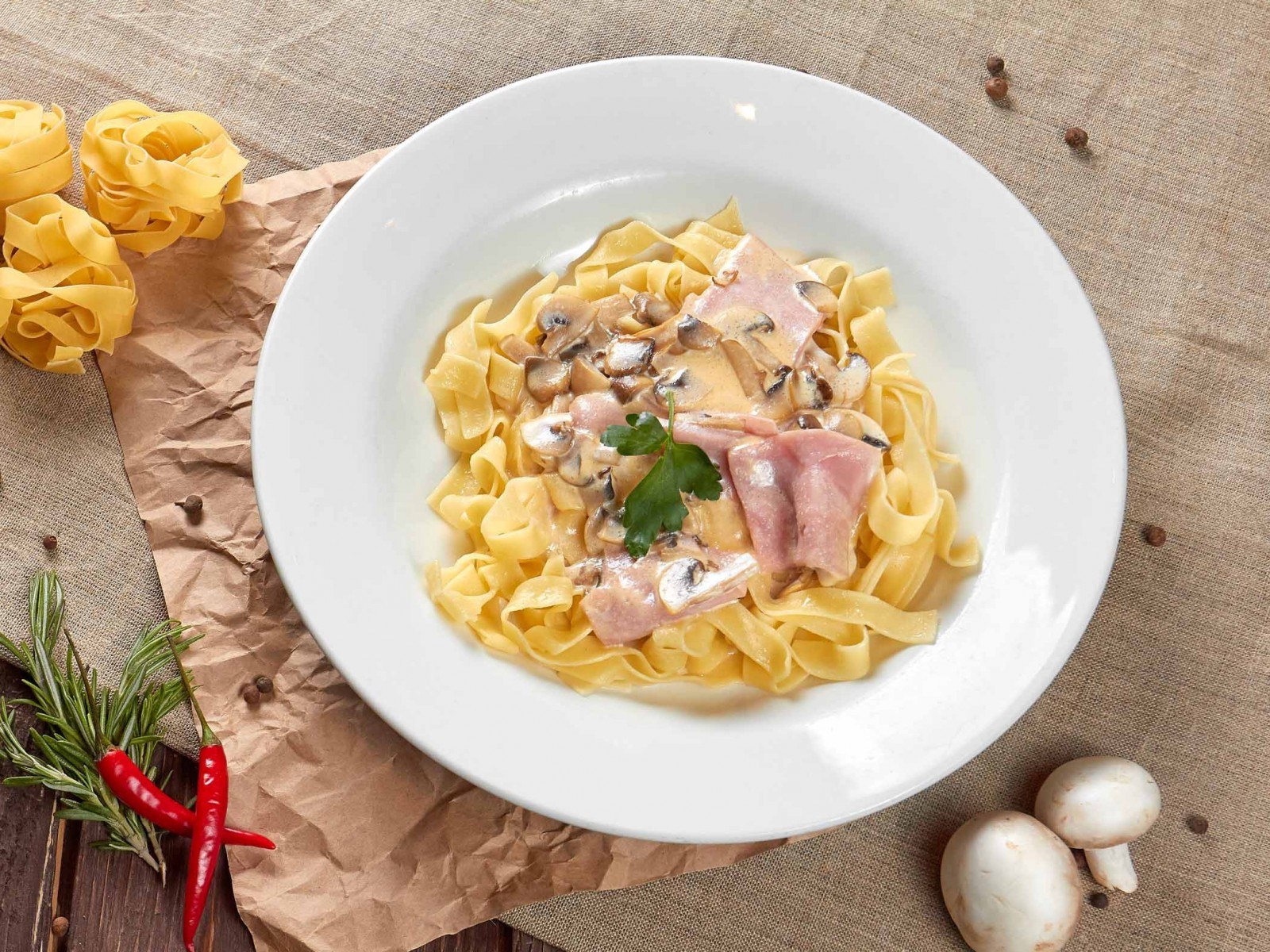 Фетучини с ветчиной и грибами в сливочном соусе