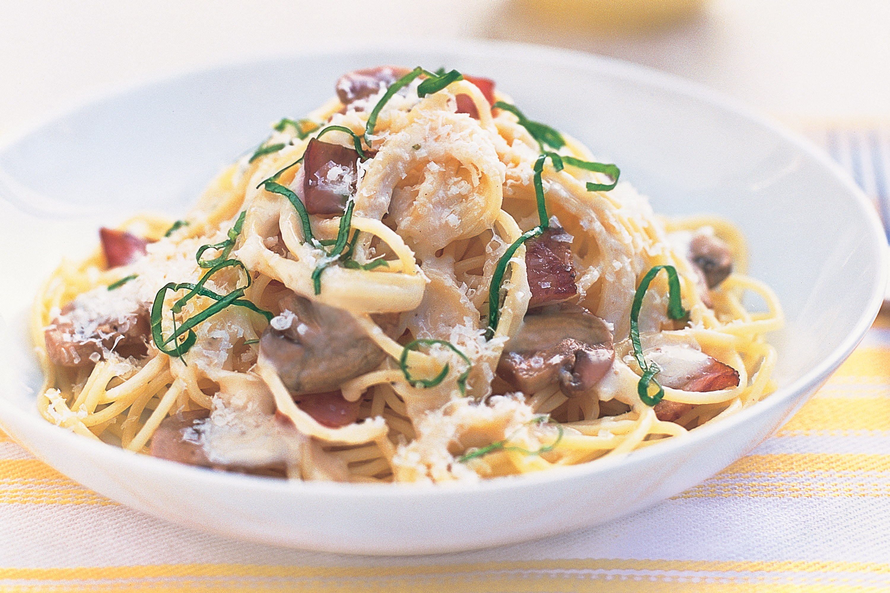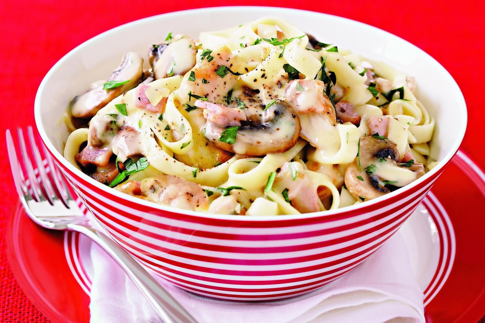 Паста с ветчиной и грибами (48 фото)
