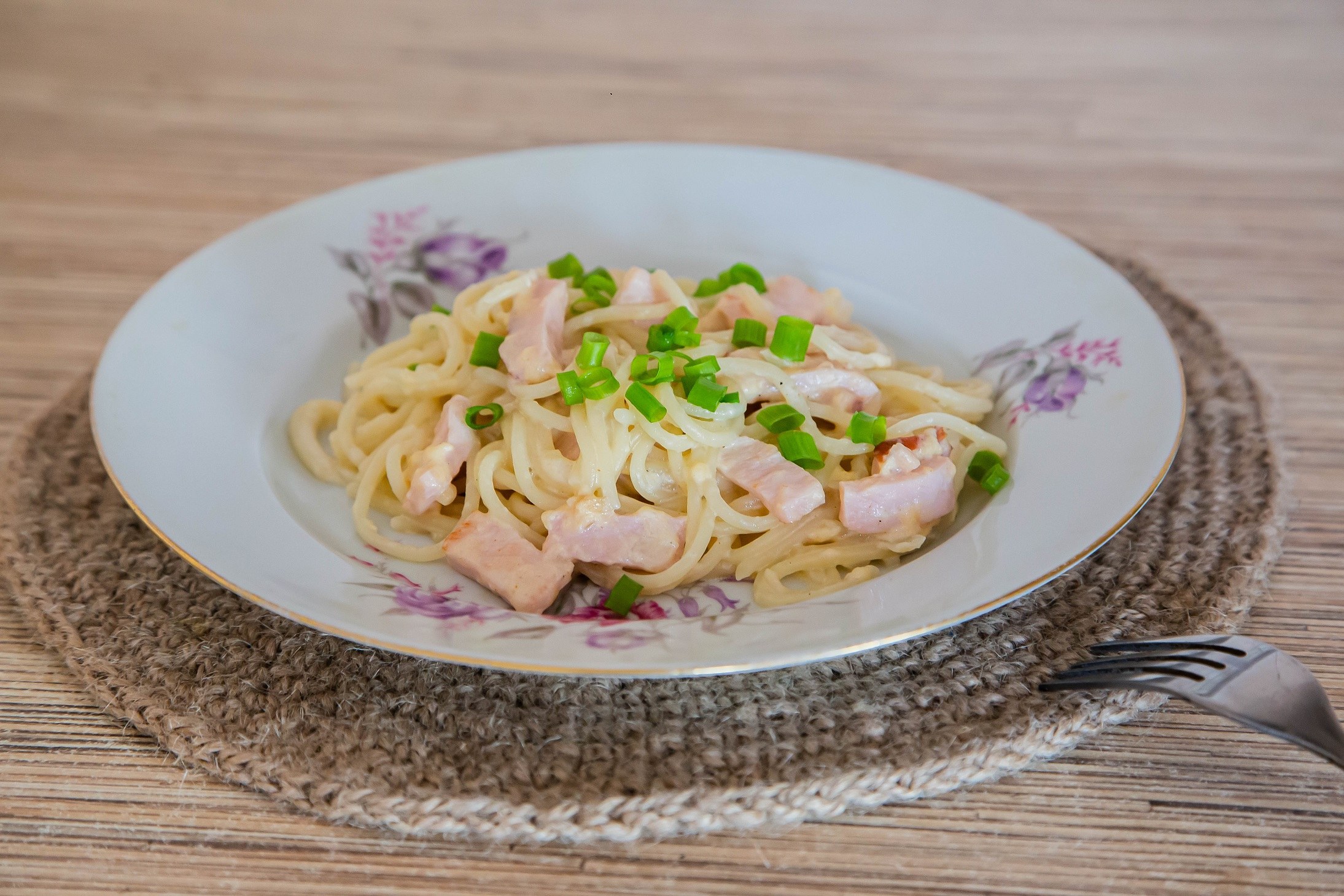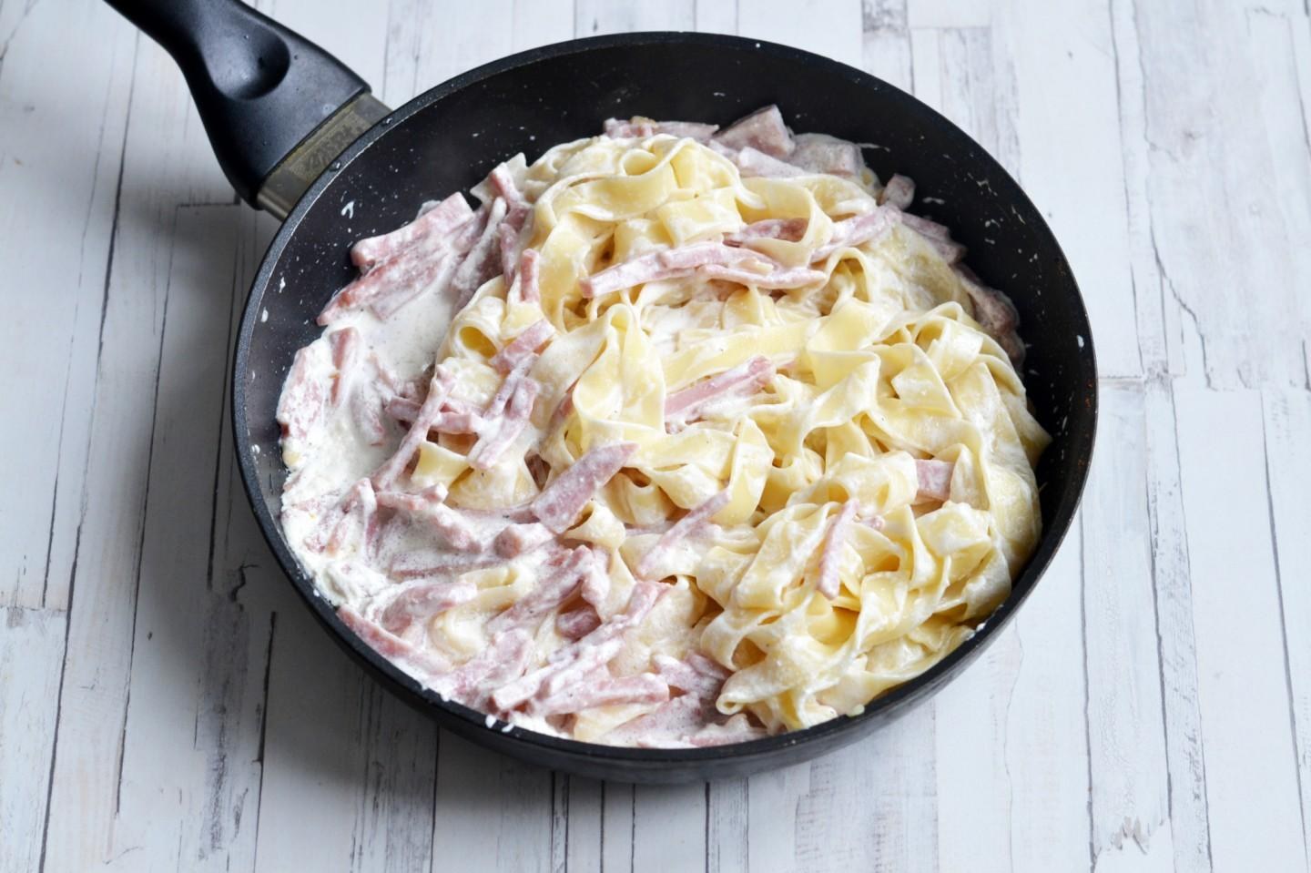 Паста карбонара с ветчиной
