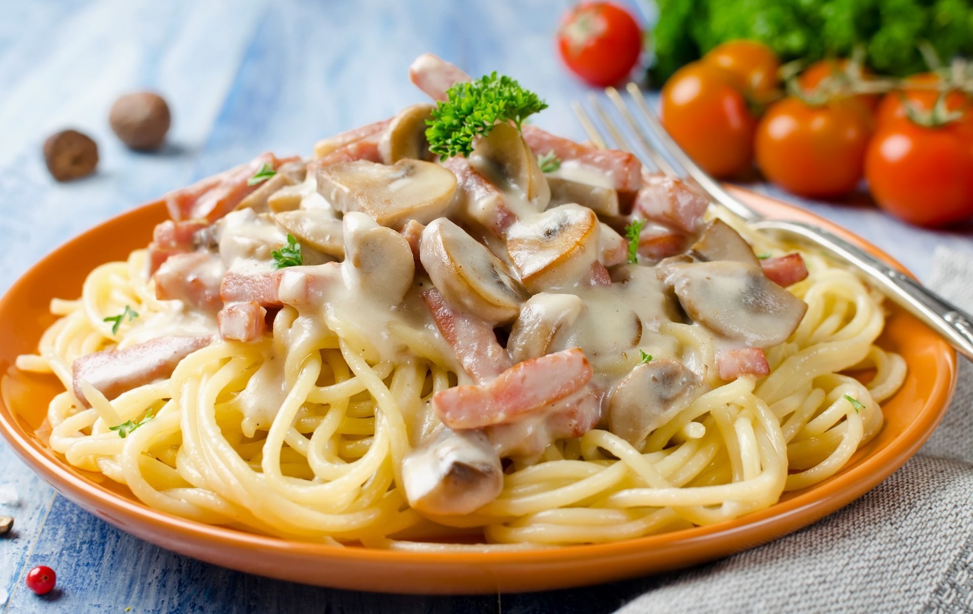 Карбонара с грибами и сливками