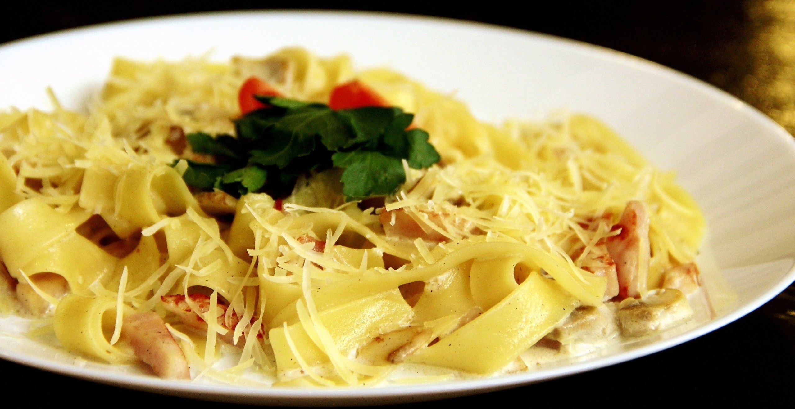 Карбонара с курицей и грибами в сливочном соусе