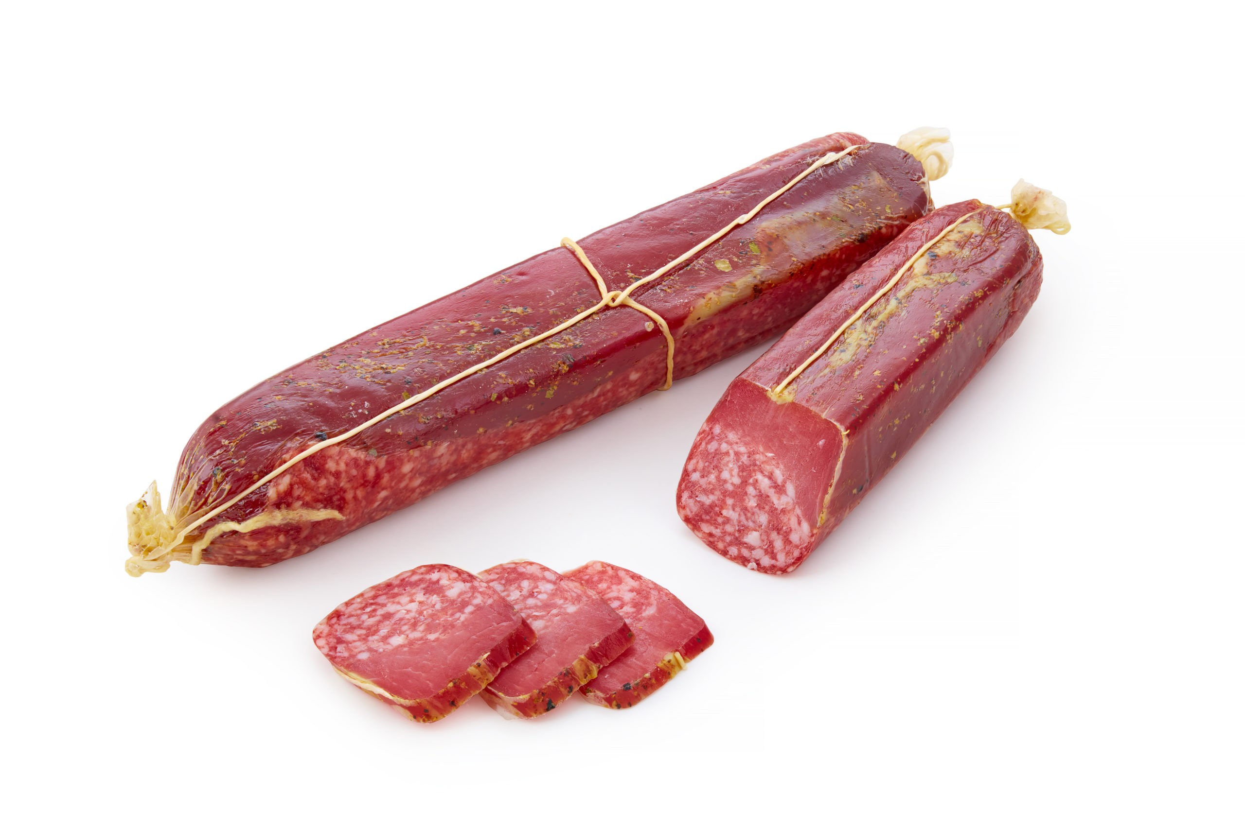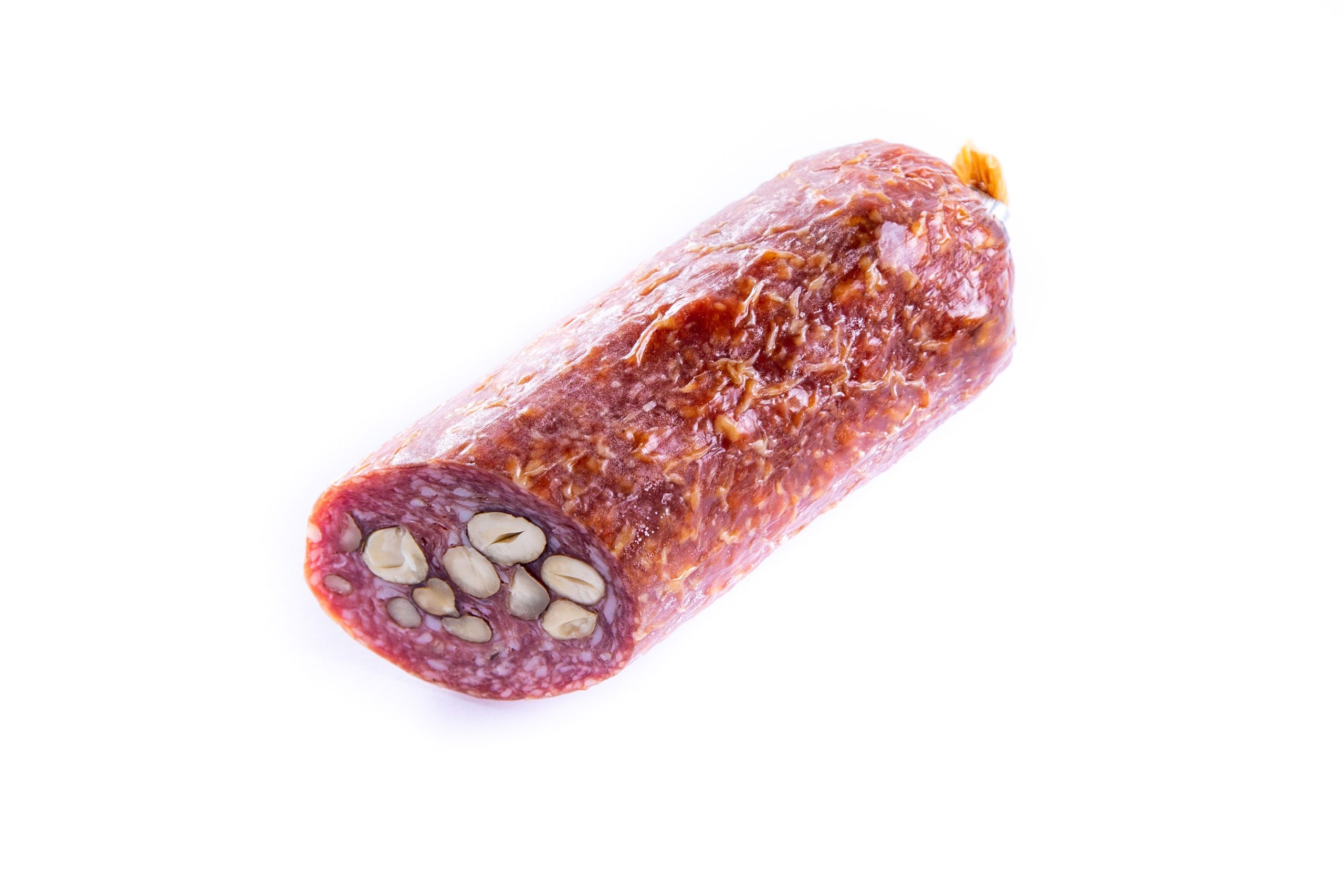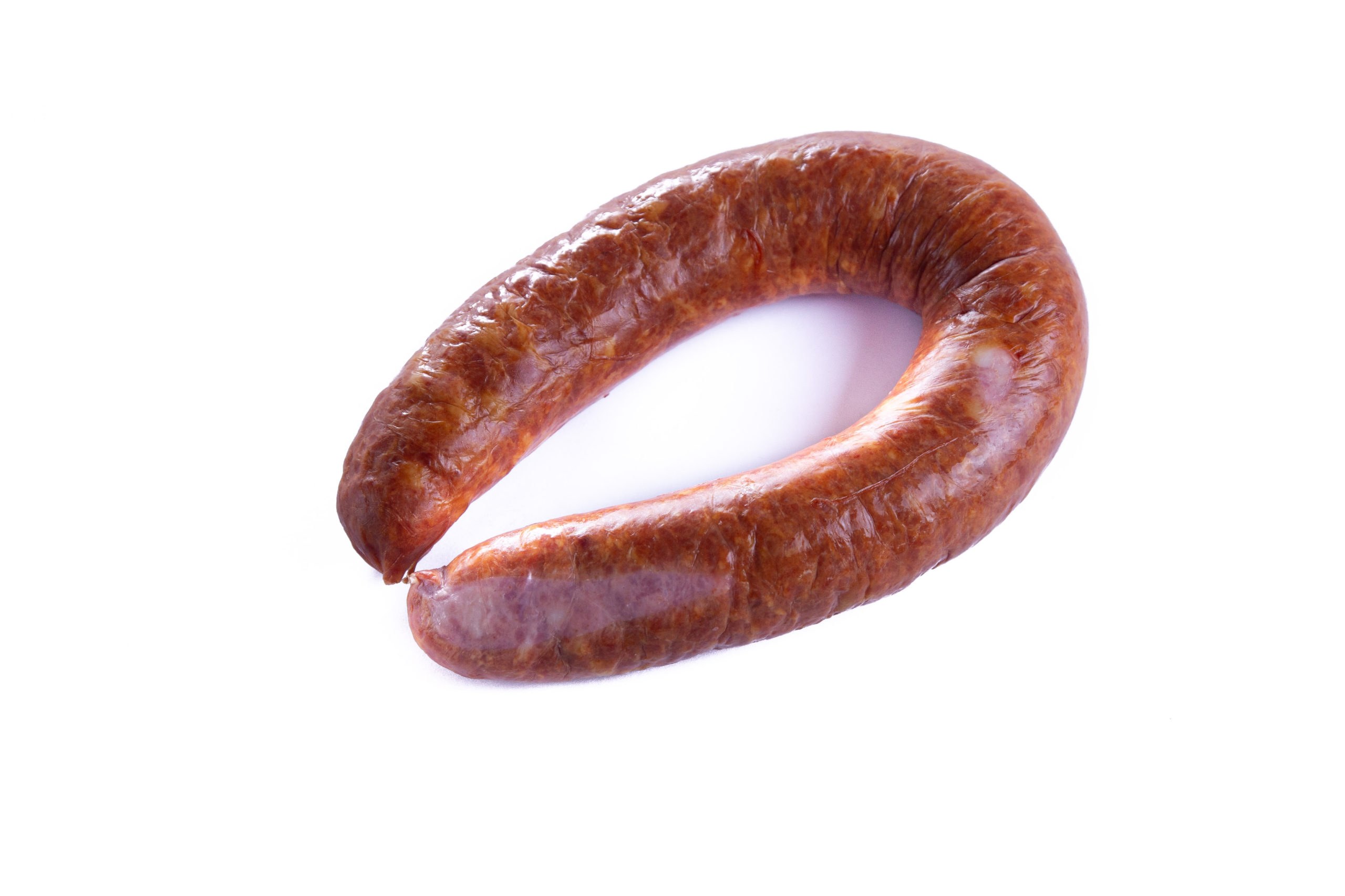 Краковская колбаса на белом фоне