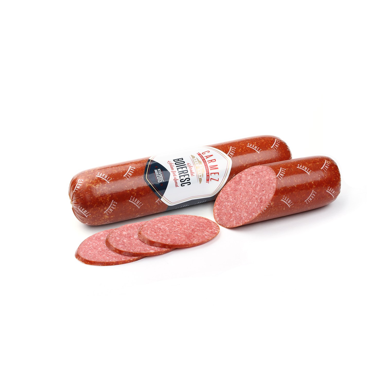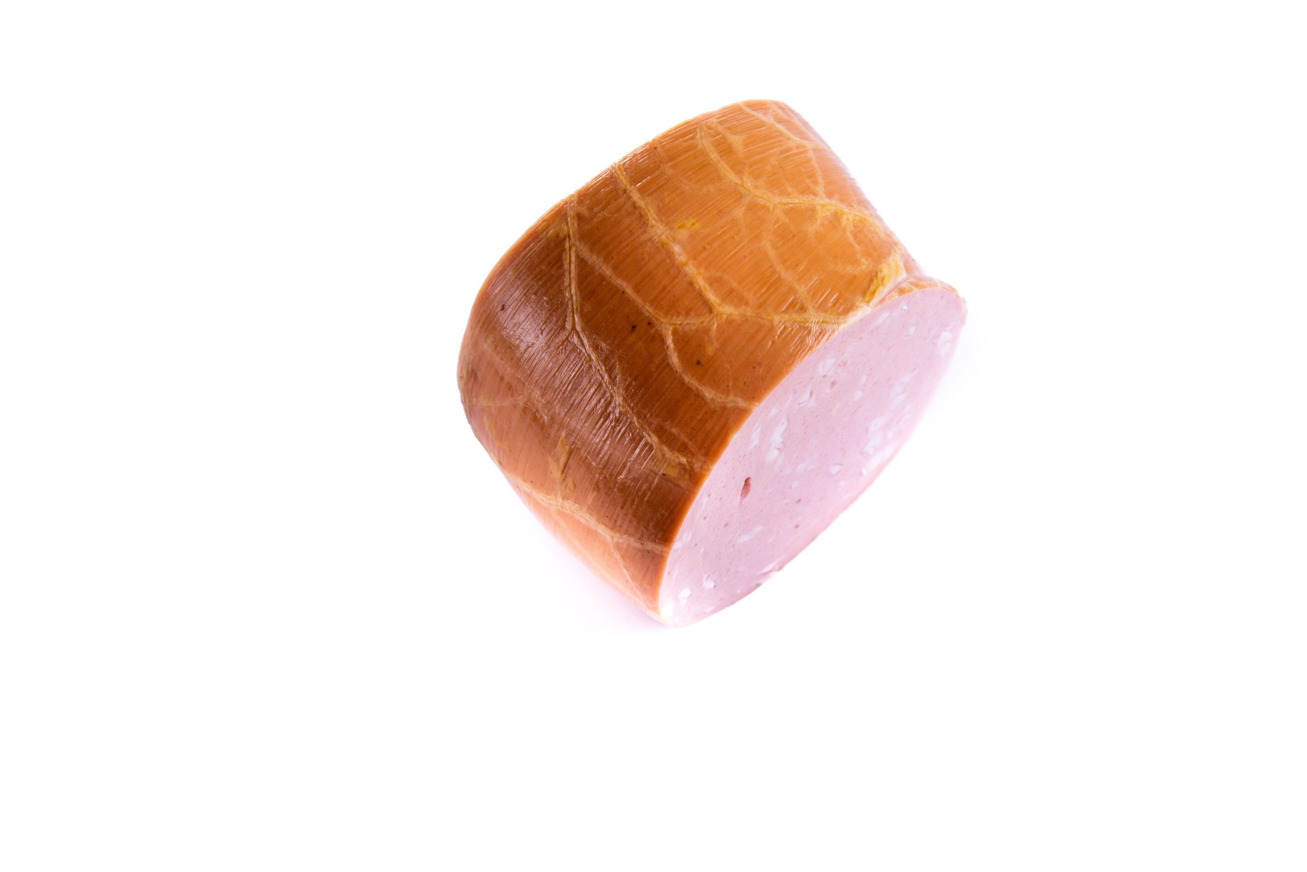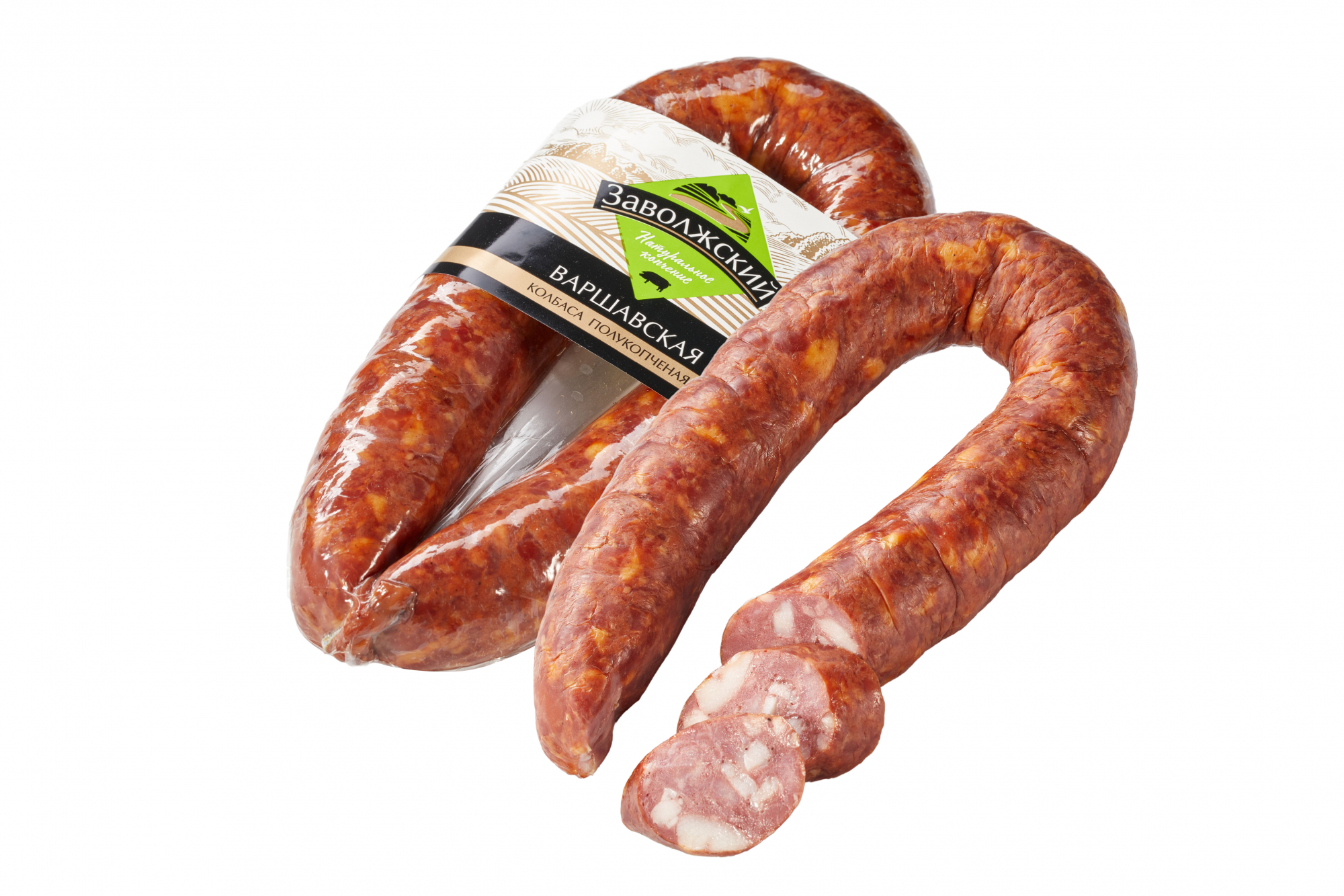 Краковская колбаса на белом фоне