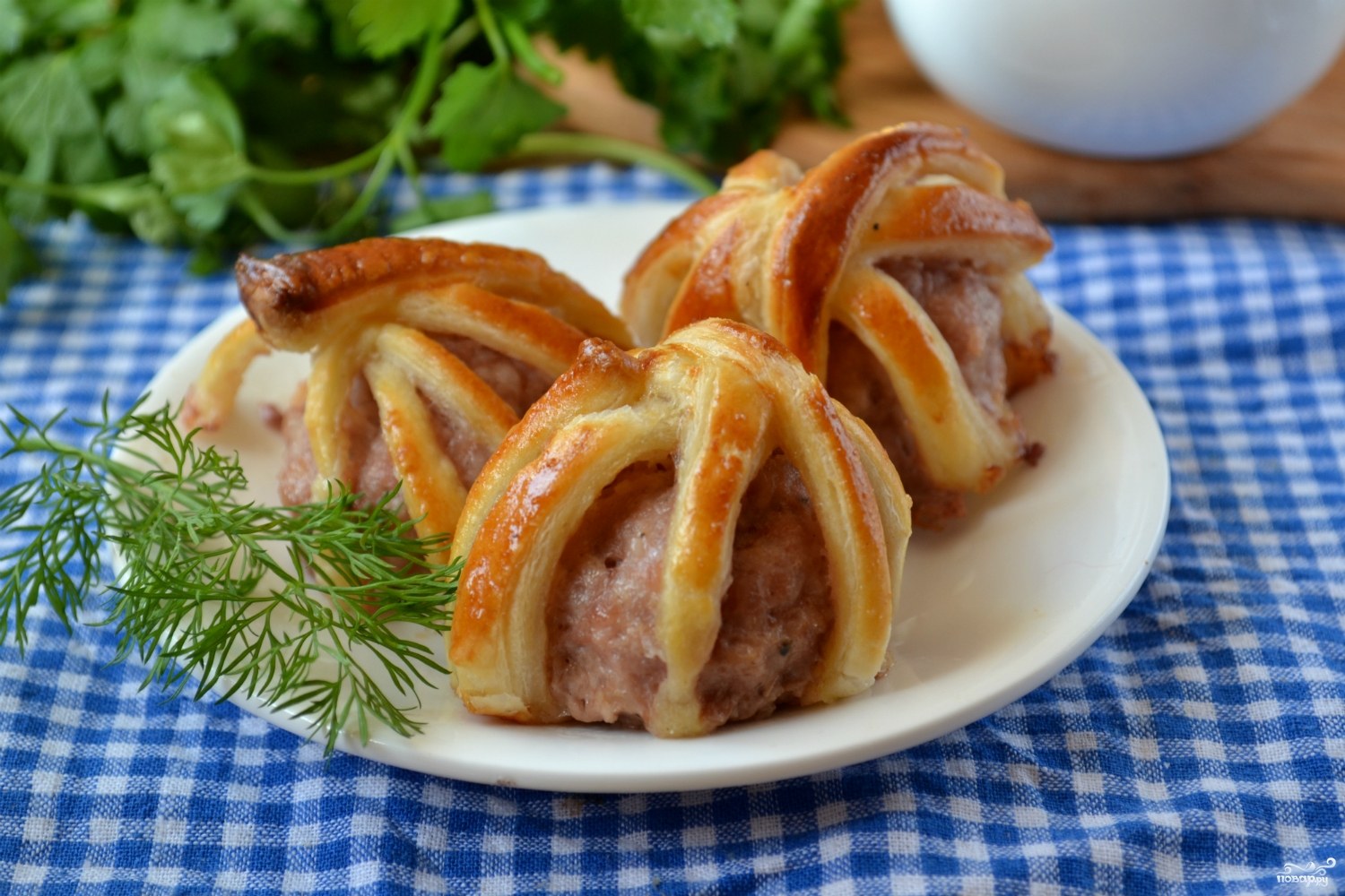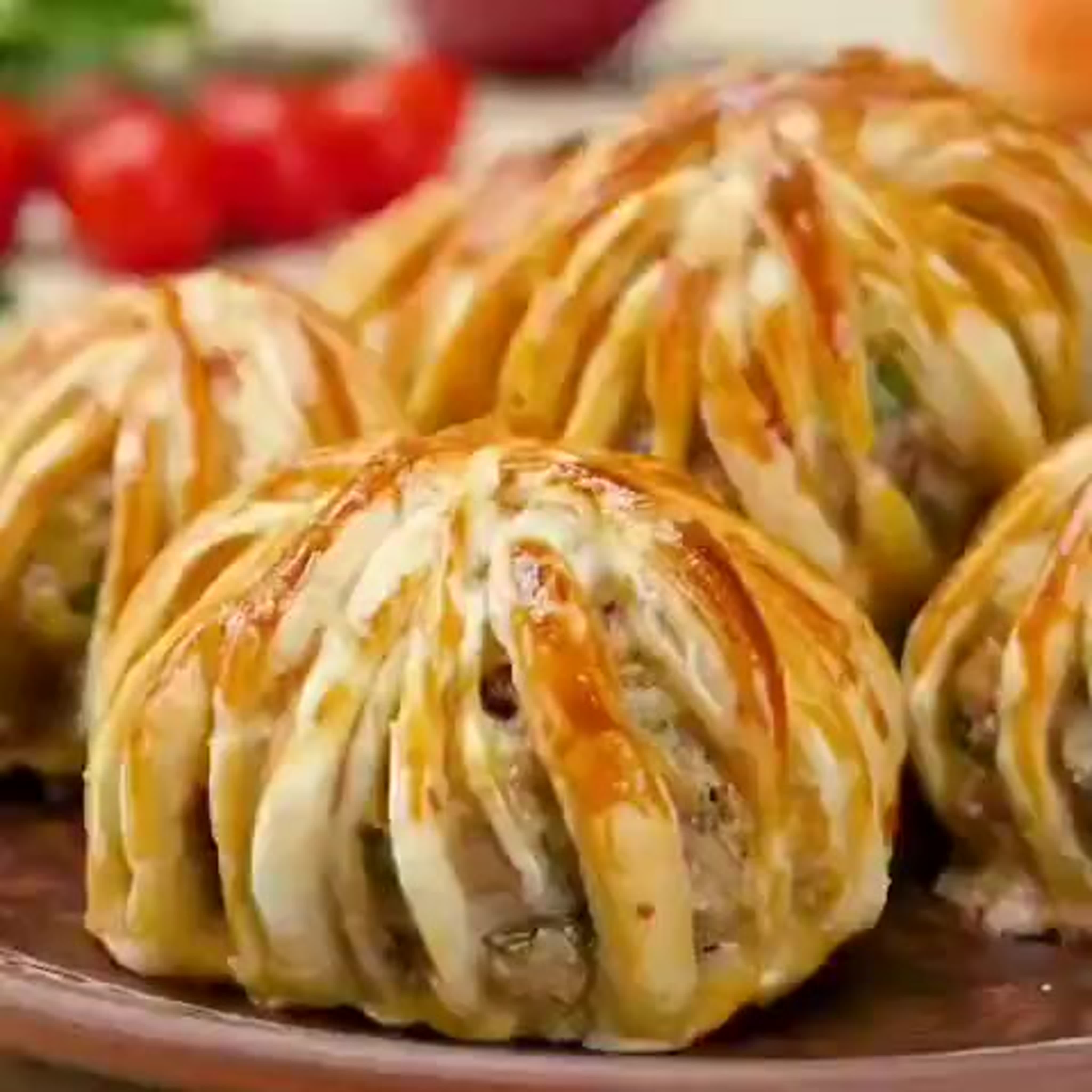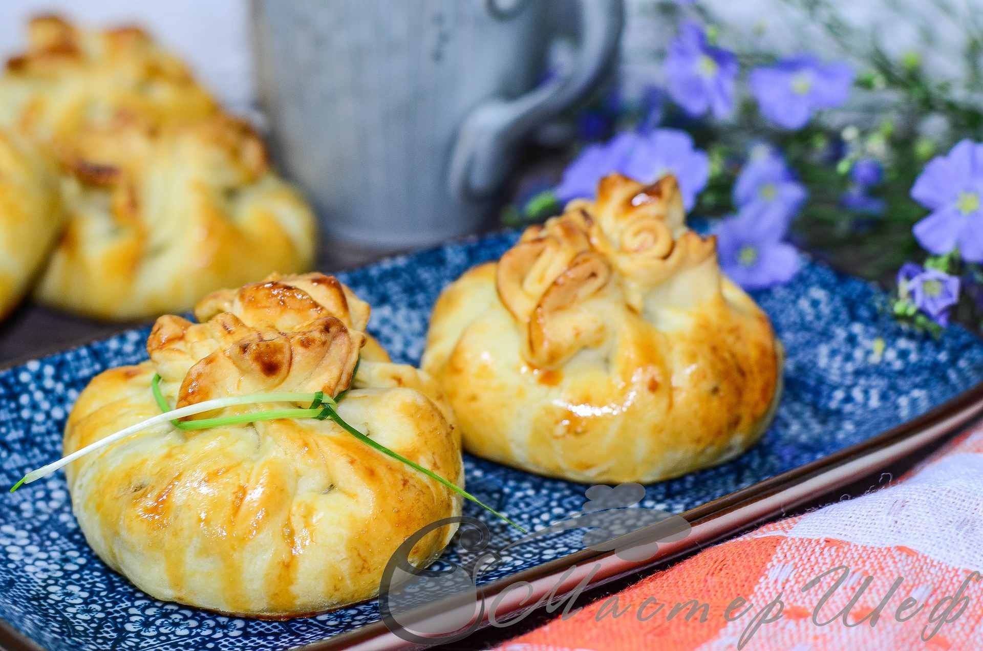 Мешочки с мясом из слоеного теста