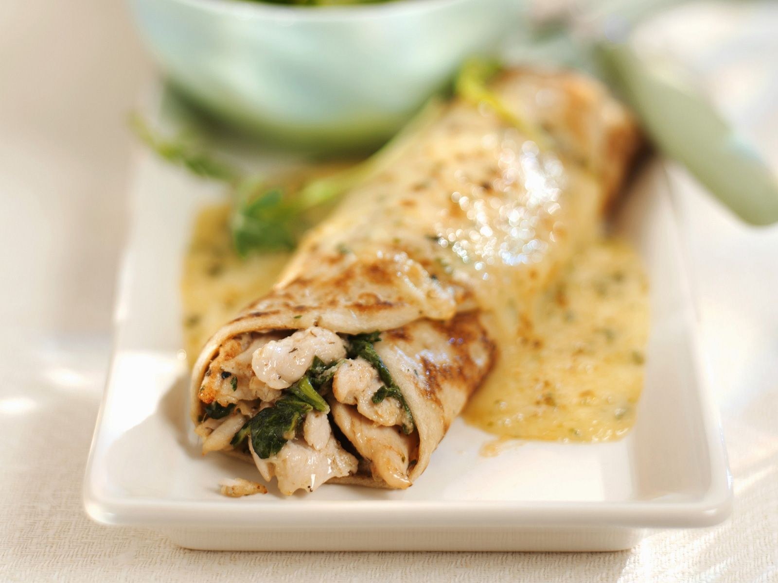Блинчики с курицей в соусе бешамель