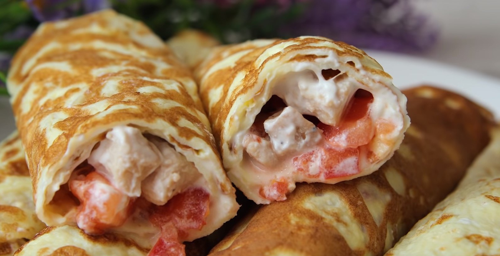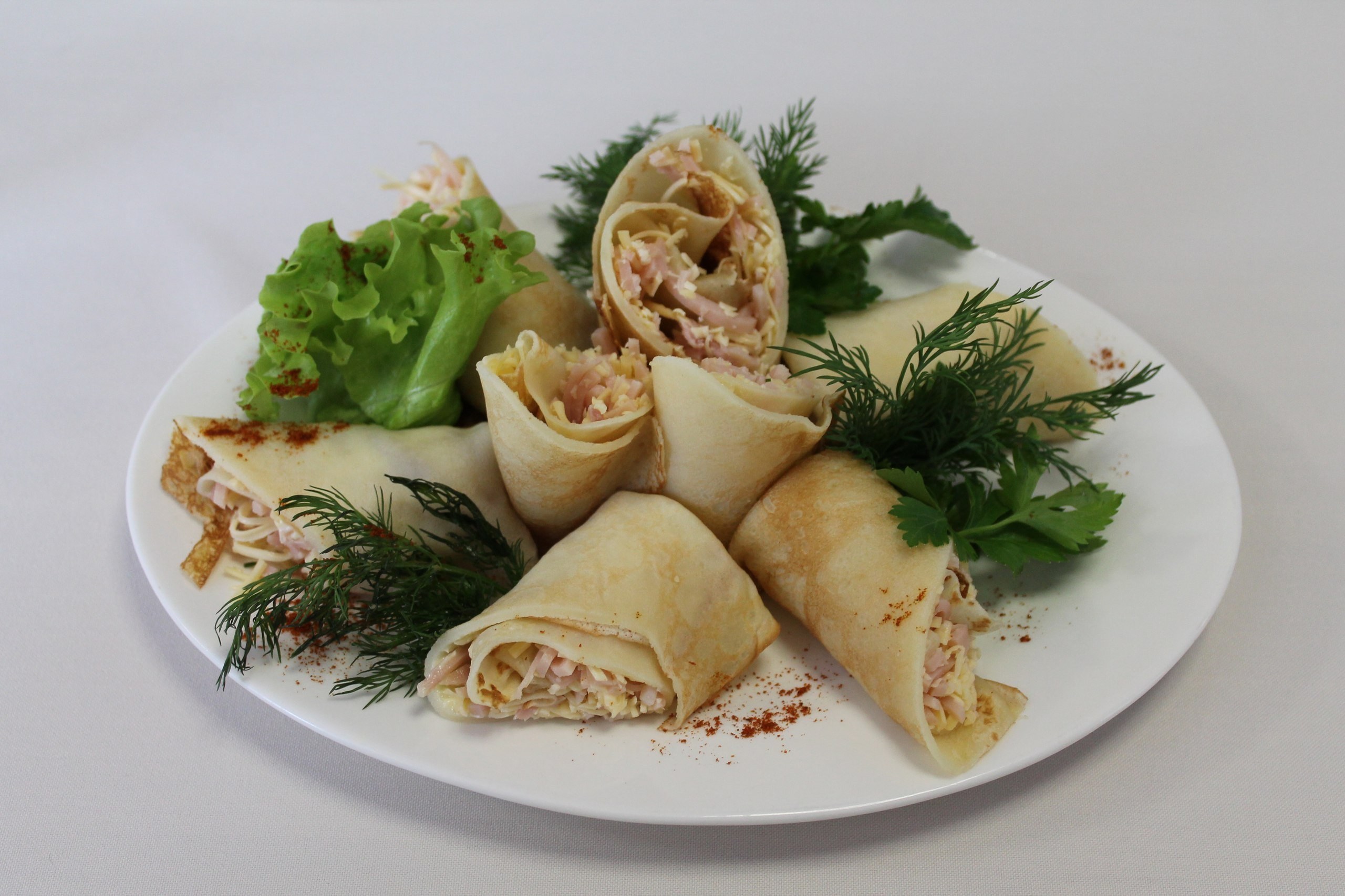 Рулетики из блинов с курицей