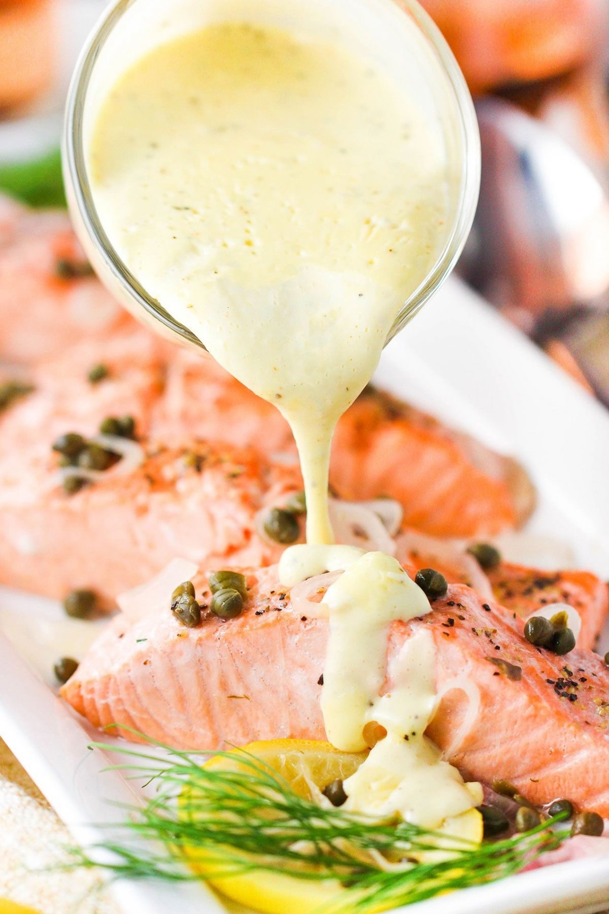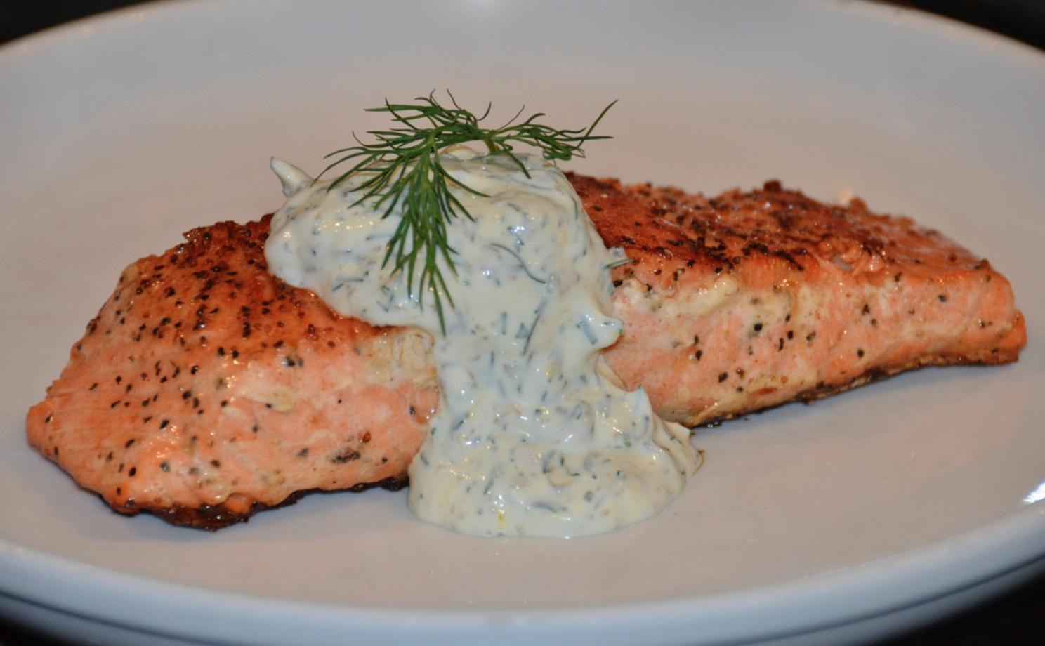 Лосось с соусом тартар
